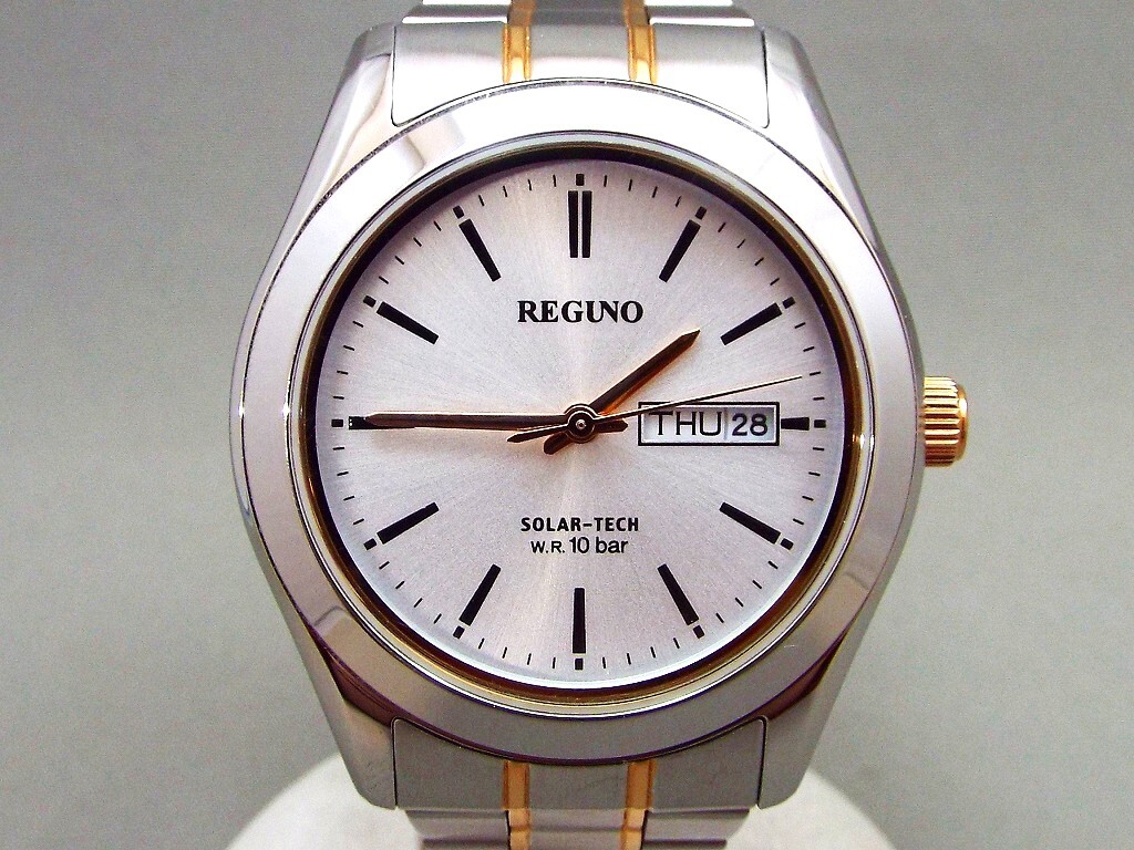 商品説明 | ランク/ B(状態良好) 実寸サイズ/ ケース径(リューズ含む):39.7mm 腕周り:15.8cm(予備コマなし) ※素人採寸でございますので、若干の誤差はご了承下さい。 作動/ 出品時に動作確認済みでございます。保管・輸送中は暗所になる為、到着時に止まっている場合がございます。商品到着時に十分な蓄電を行って下さい。 コンディション/ 使用に伴う細かな打痕、キズや擦れ、少々汚れなどがございます。 ※出品物、付属品はお写真に写っているものが全てです。 付属品/ なし 管理No.W47y3-K |