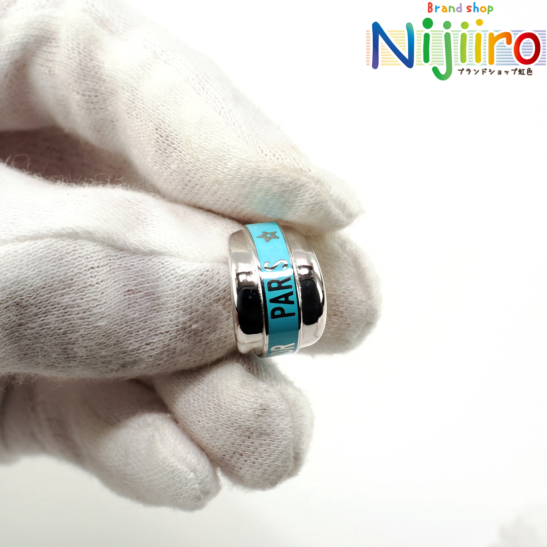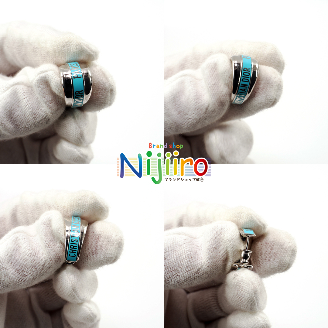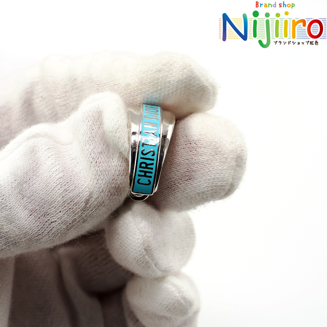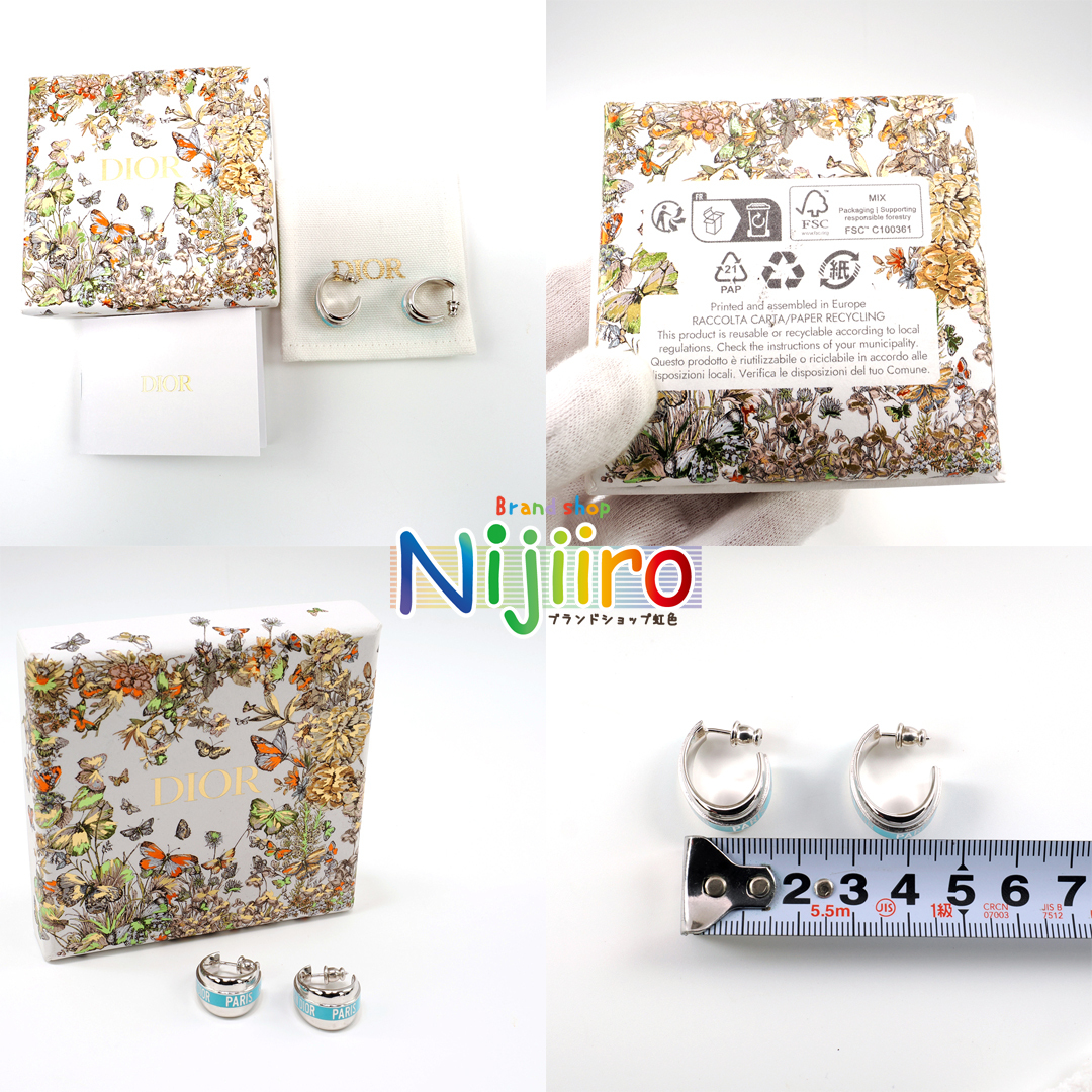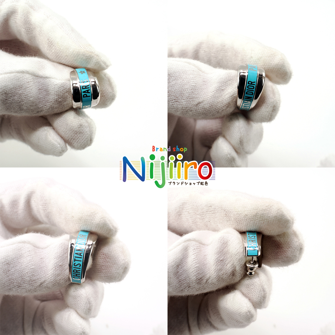 ピカピカのシルバー色に水色でChristian Dior Parisの文字がデザインされております。