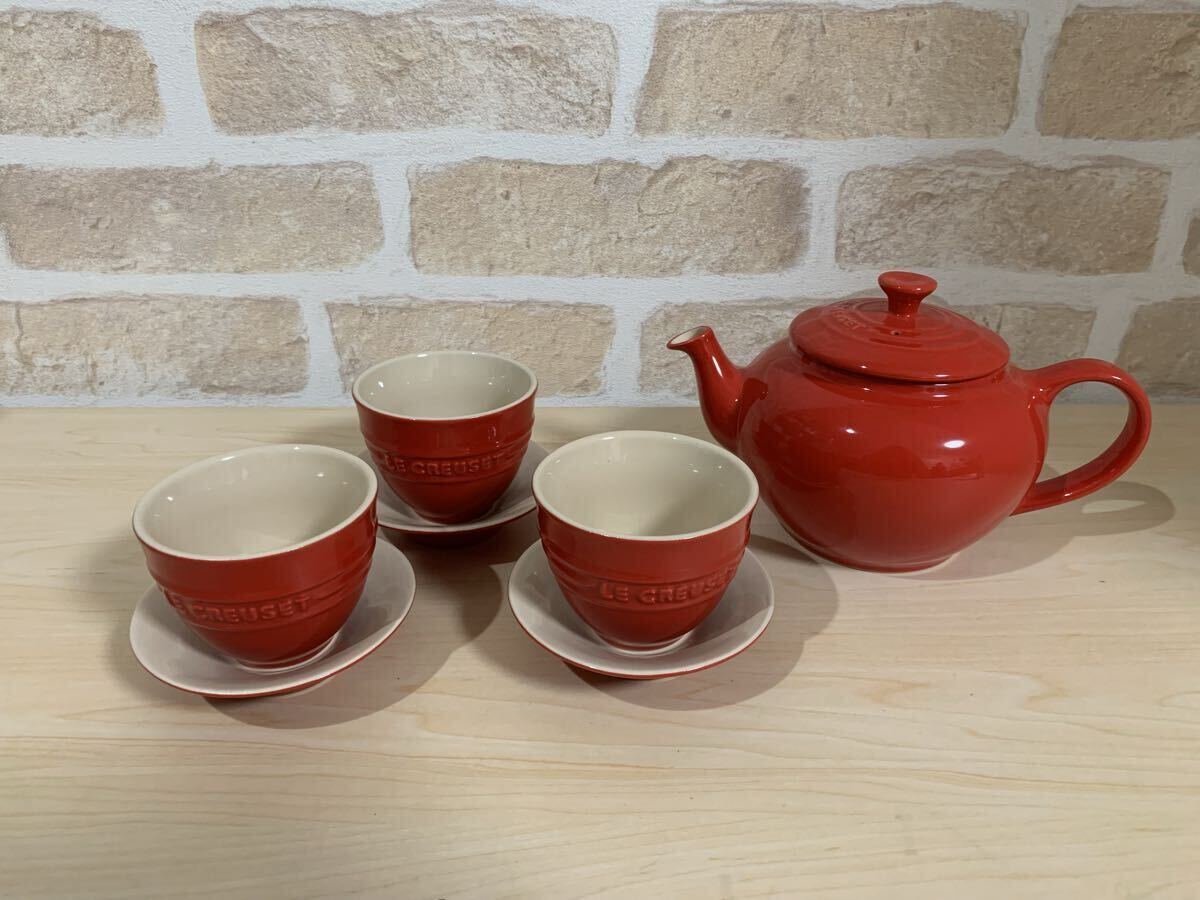 商品:LE CREUSET ル・クルーゼ ティーポット カップ ソーサー セット ティーポットセット 3客 茶器セット レッド 洋食器 ティーセット