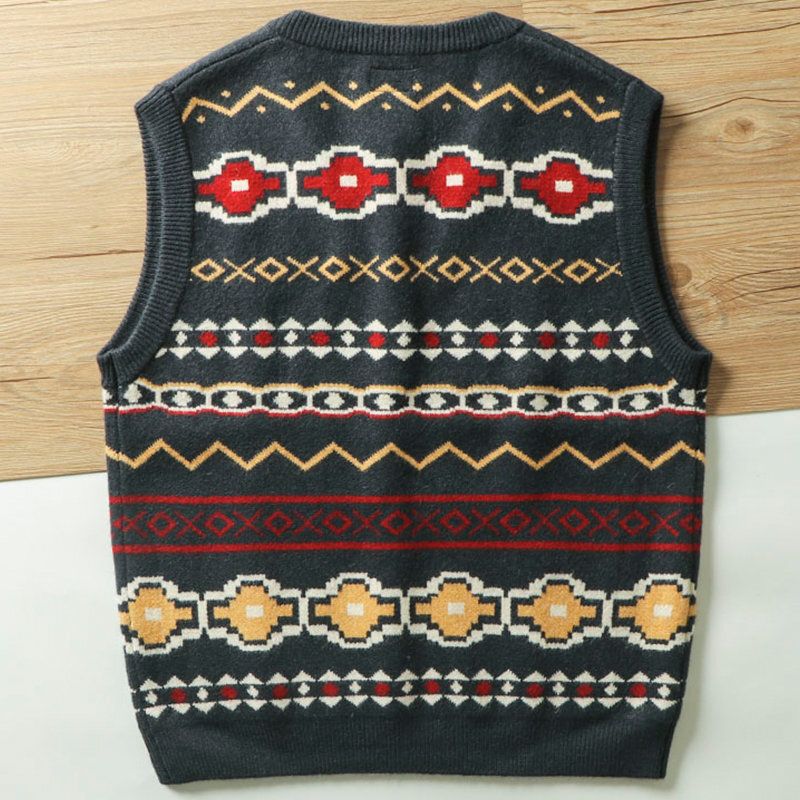 Y6354-L 新品 ウール混 Vネック ニット ベスト ジャガード ネイティブ柄 セーター 防寒 暖かさ 秋冬 セーター メンズ トップス 着心地抜群