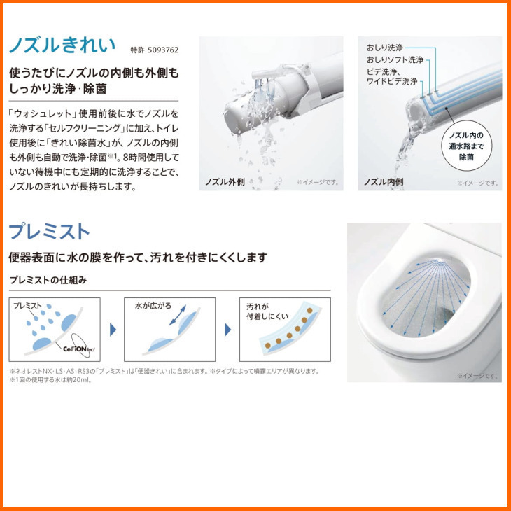 〜TOTO 3つのびっくリーン技術〜 ●使うたび除菌 便器もノズルも便座も、清潔つづく ●汚れツルリン 約1200℃で焼き上げた、ナノレベルになめらかな陶器表面だから、汚れがツルっと落ちてずっときれい ●おそうじ超ラク 凸凹をそぎ落としたカタチで、便器フチ裏もないからサッとひとふき、お手入れカンタン ※商品の詳細につきましてはメーカーHP・カタログでご確認願います ◆本商品以外のタイプもございます。 ◆トイレの他、システムキッチン・ユニットバス・洗面化粧台等の水廻り商品も取り扱って おります。 ◆オプション等で別途お見積りが必要なケースのお問い合わせは、TEL・FAX・メールにて お気軽にどうぞ! ◆メーカーの定価見積書からもお買い求め頂けます。事前にご連絡の上、FAXまたはメール にてお送り下さい。弊社価格の見積書を作成致します。 ◆サイズ違い等、ショップ上に掲載されていない商品をご希望の方はお問い合わせ下さい。 ⇒クリックで”WEBカタログ”にリンクします |