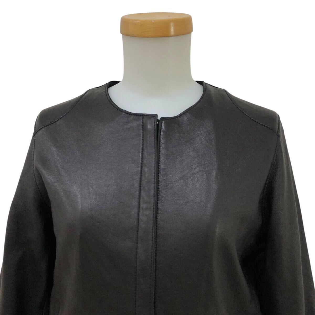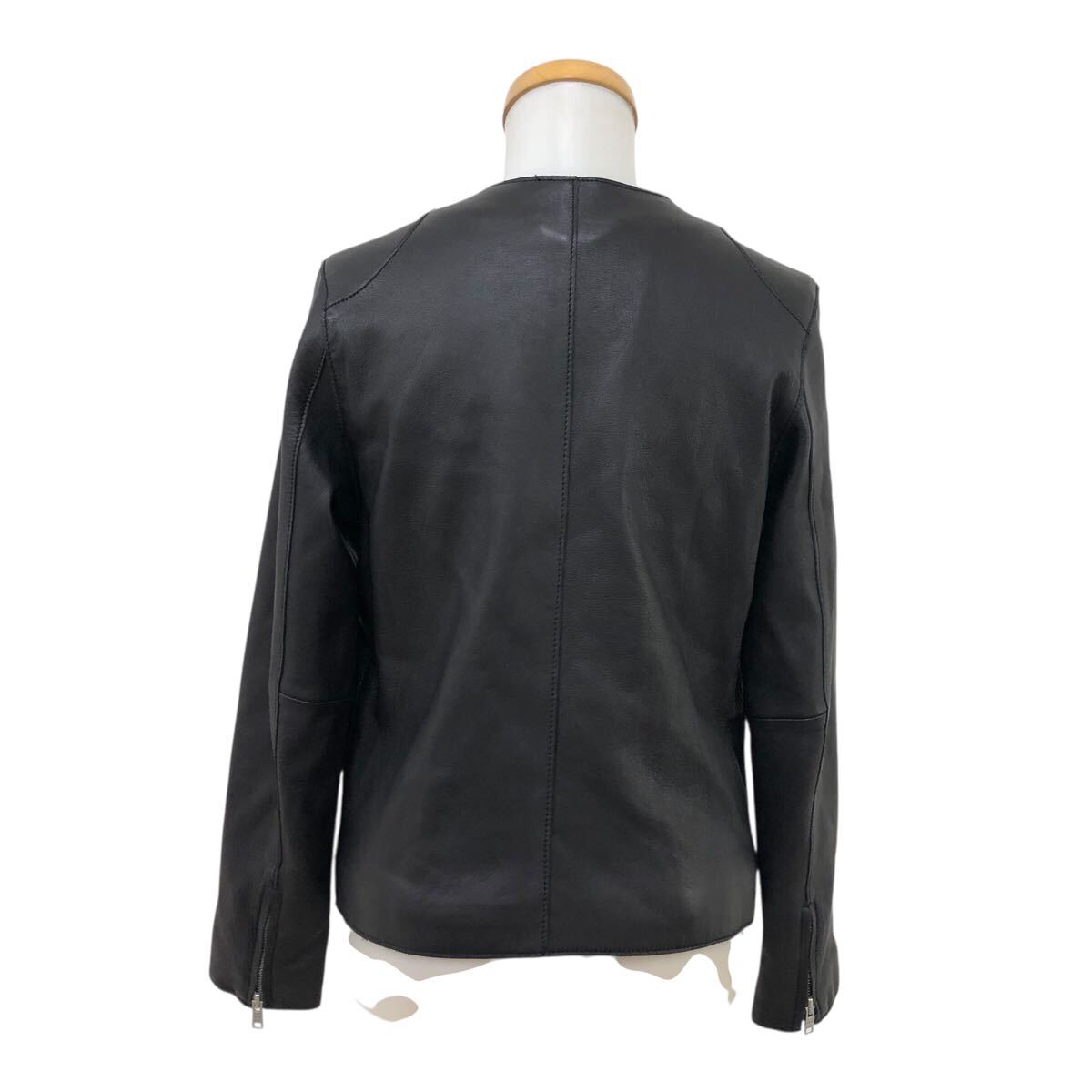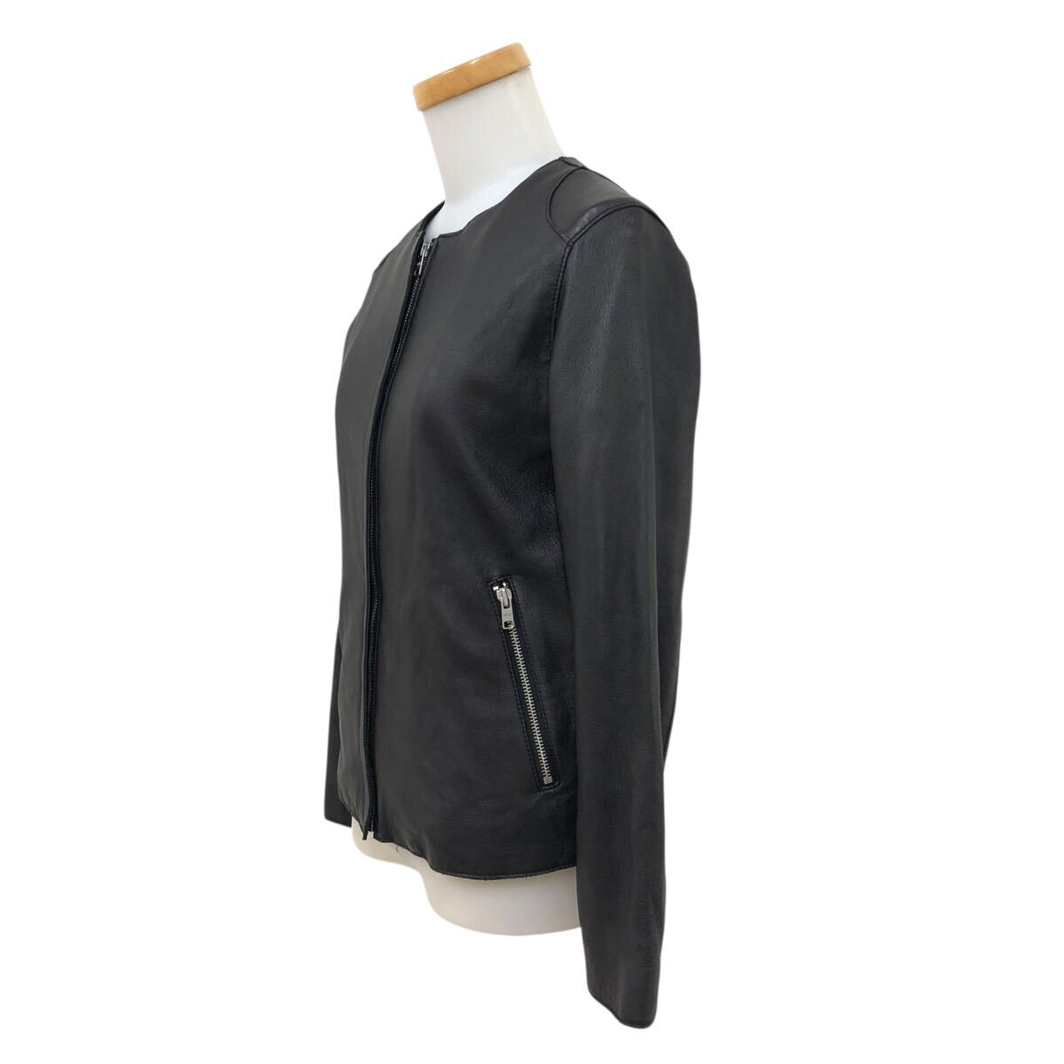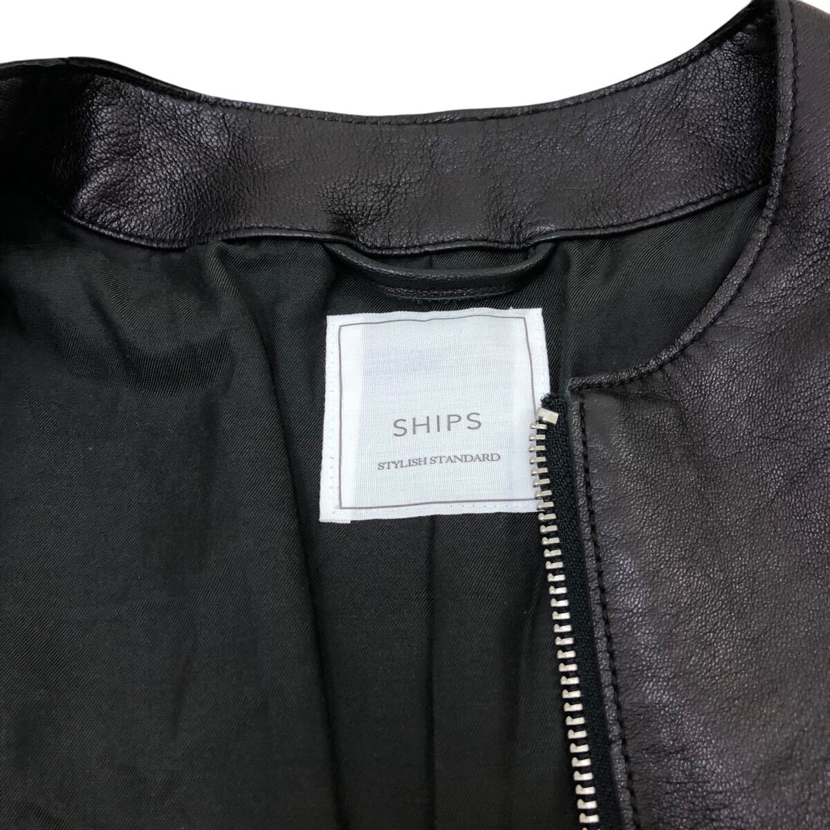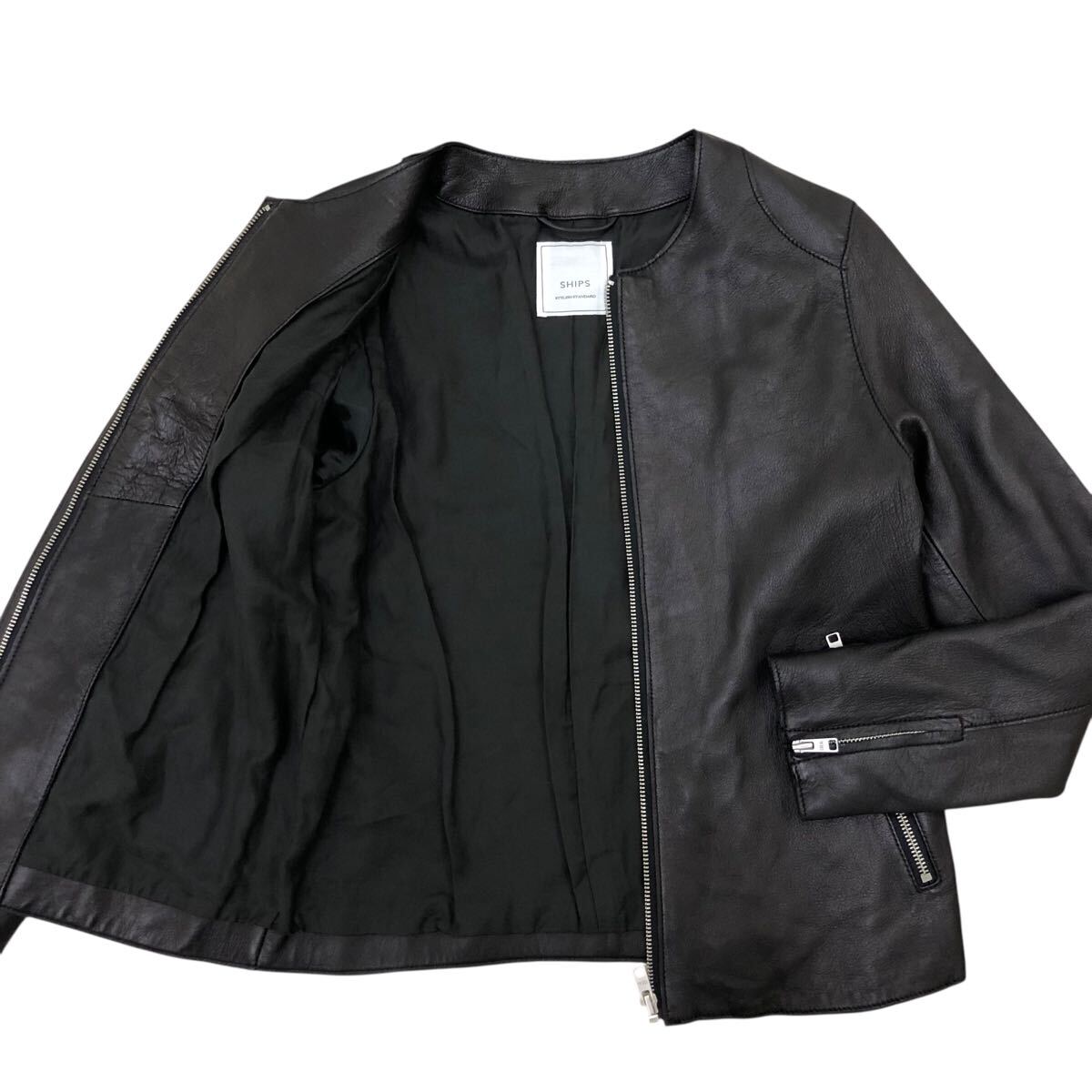 8m646-58 SHIPS シップス 本革 レザー ノーカラー ジャケット 上着 羽織り アウター 皮革 羊革 ブラック 黒 レディース 36