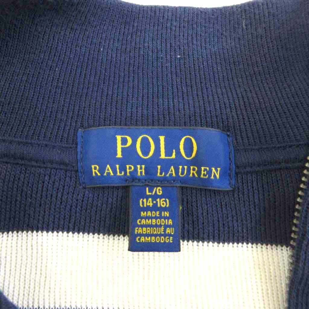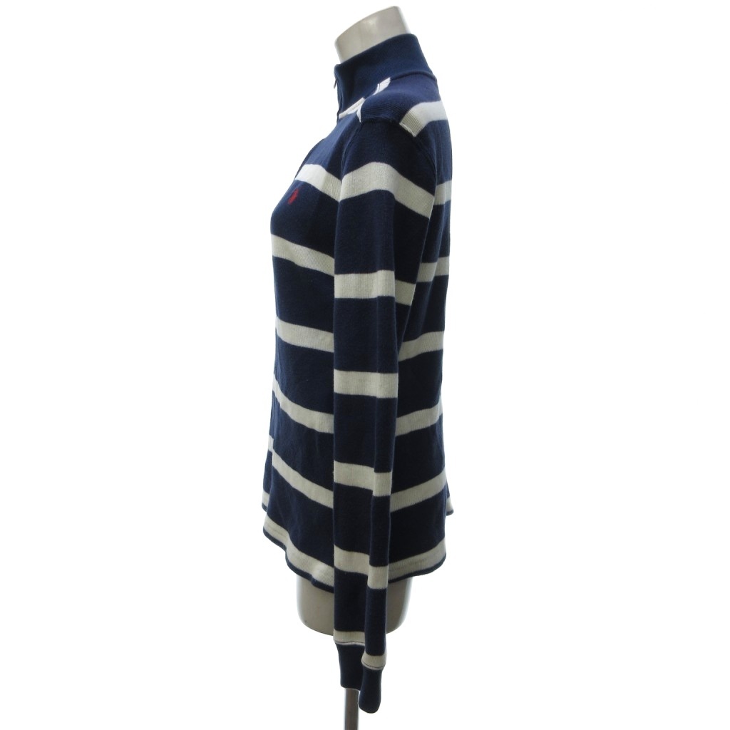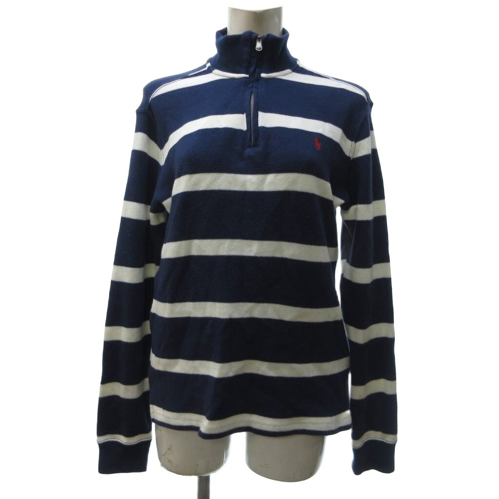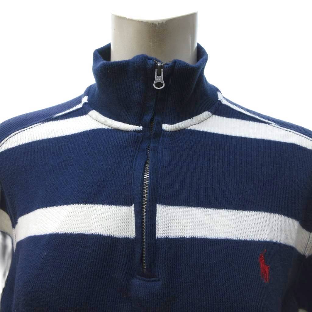 ポロ ラルフローレン POLO RALPH LAUREN 近年 ボーダー柄 ハーフジップ ニット セーター 長袖 紺 ネイビー 白 ホワイト L IBO77