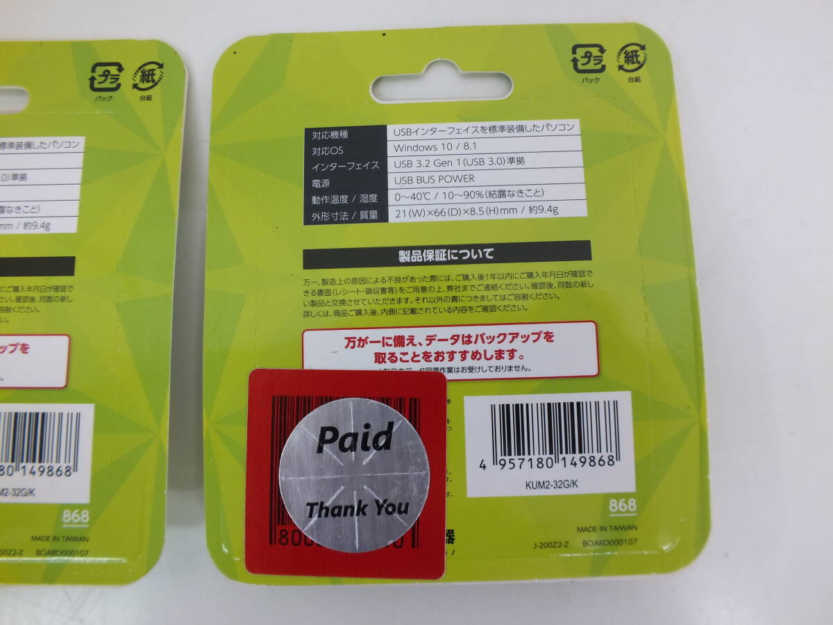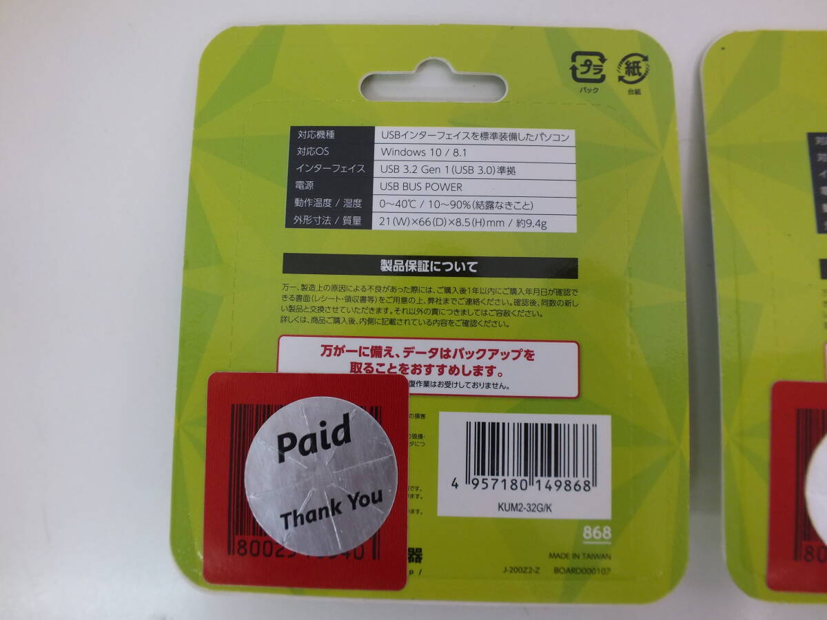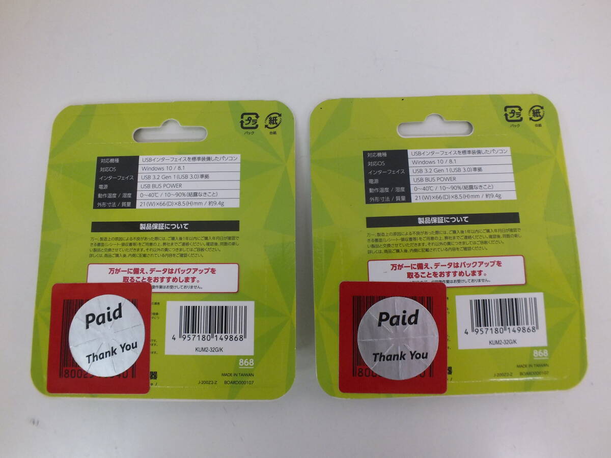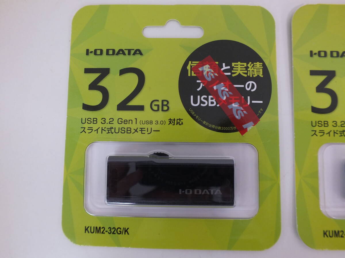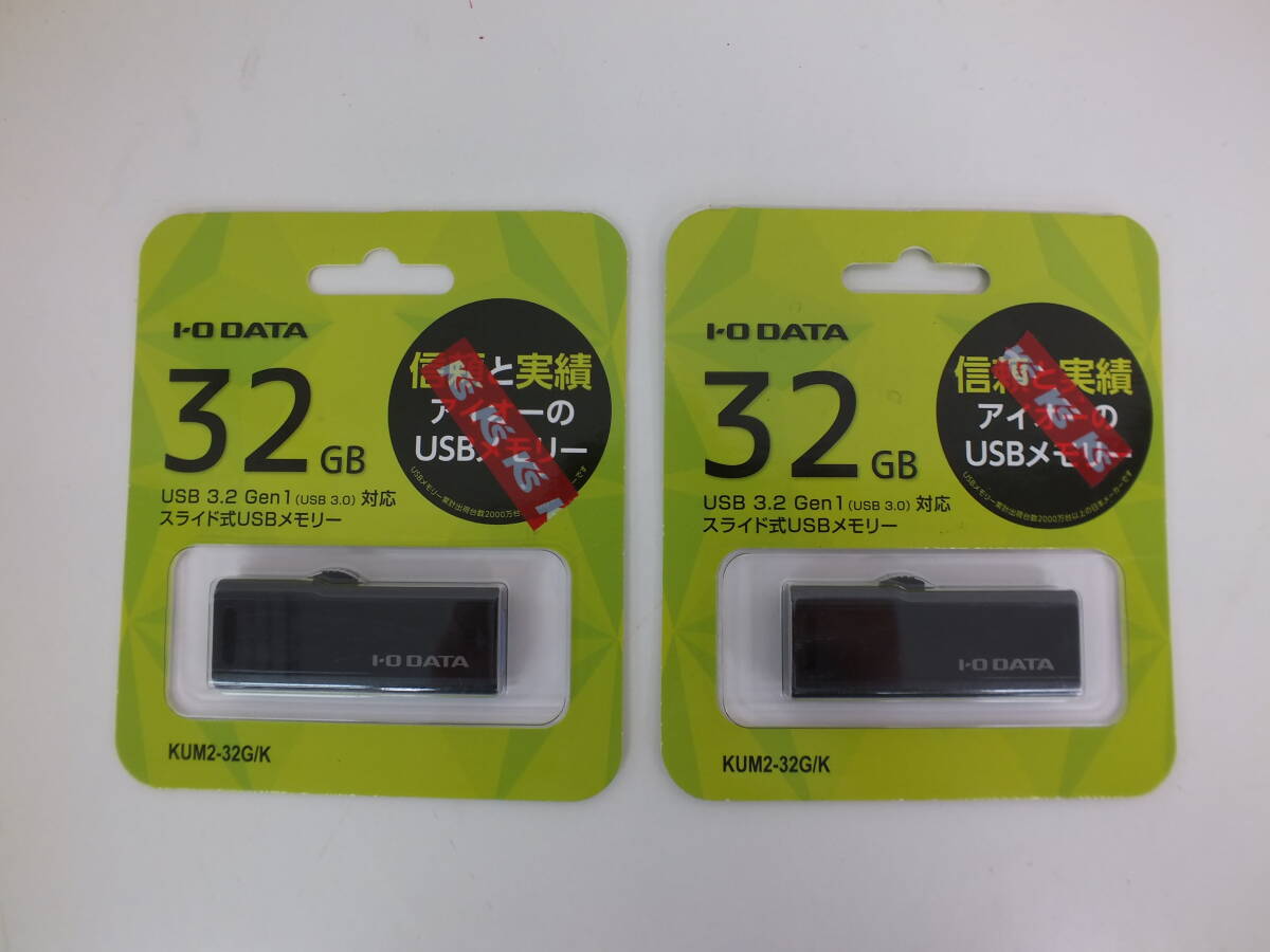 I-O DATA 2点セット USBメモリー 32GB KUM2-32G /K スライド式 アイ・オー・データ機器 未使用 激安1円スタート