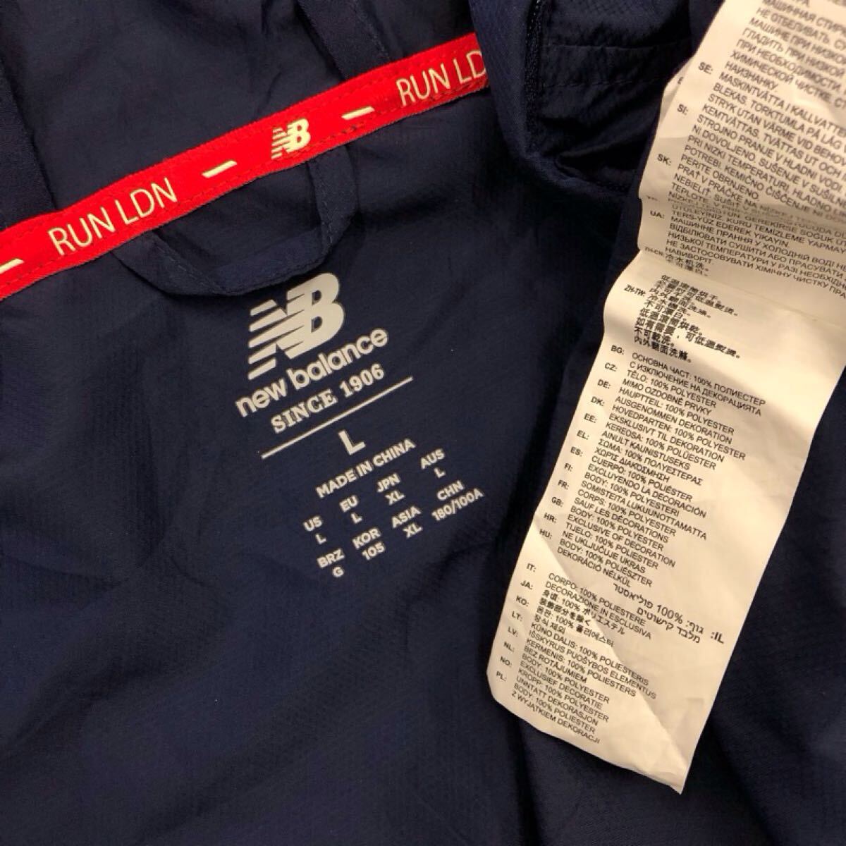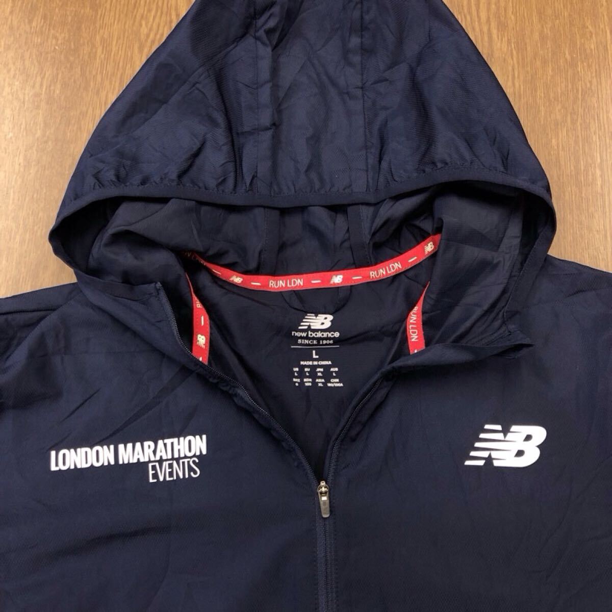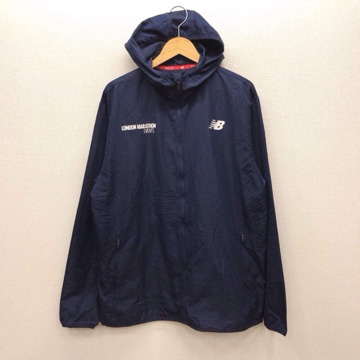 【GH610】New Balance XLサイズ ウィンドブレーカー ネイビー フード付き 薄地 ブランド古着 ニューバランス スポーツウェア 送料無料