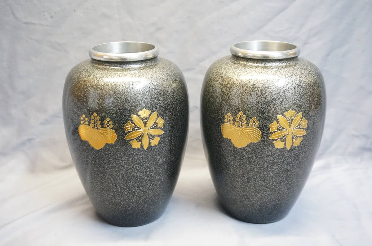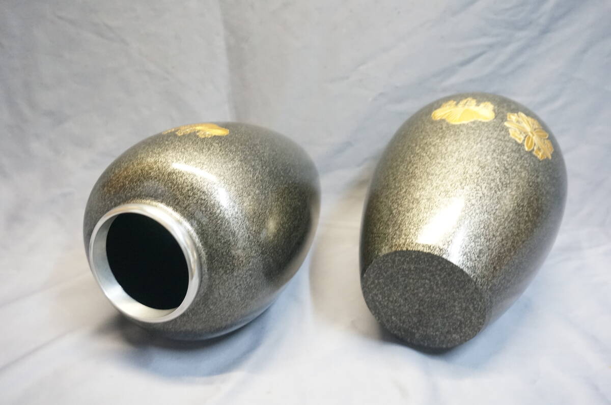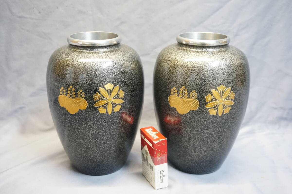 | 仏前用 アルミ製鋳物夏目花瓶 8.0寸 曹洞宗 両山紋入 手彫金 五号色 1対【デッドストック】F159 | ||||