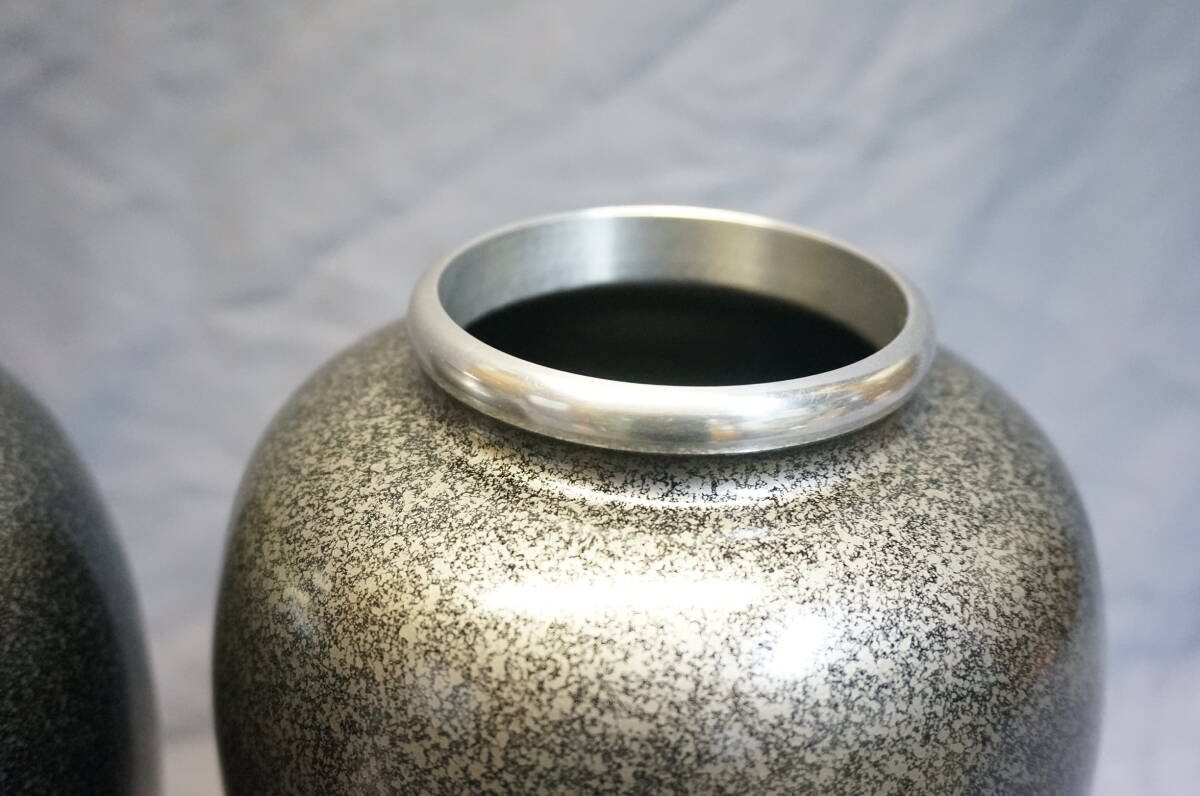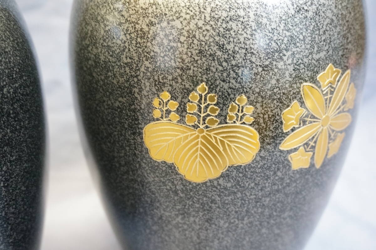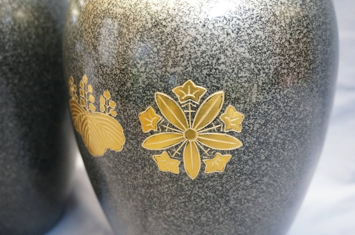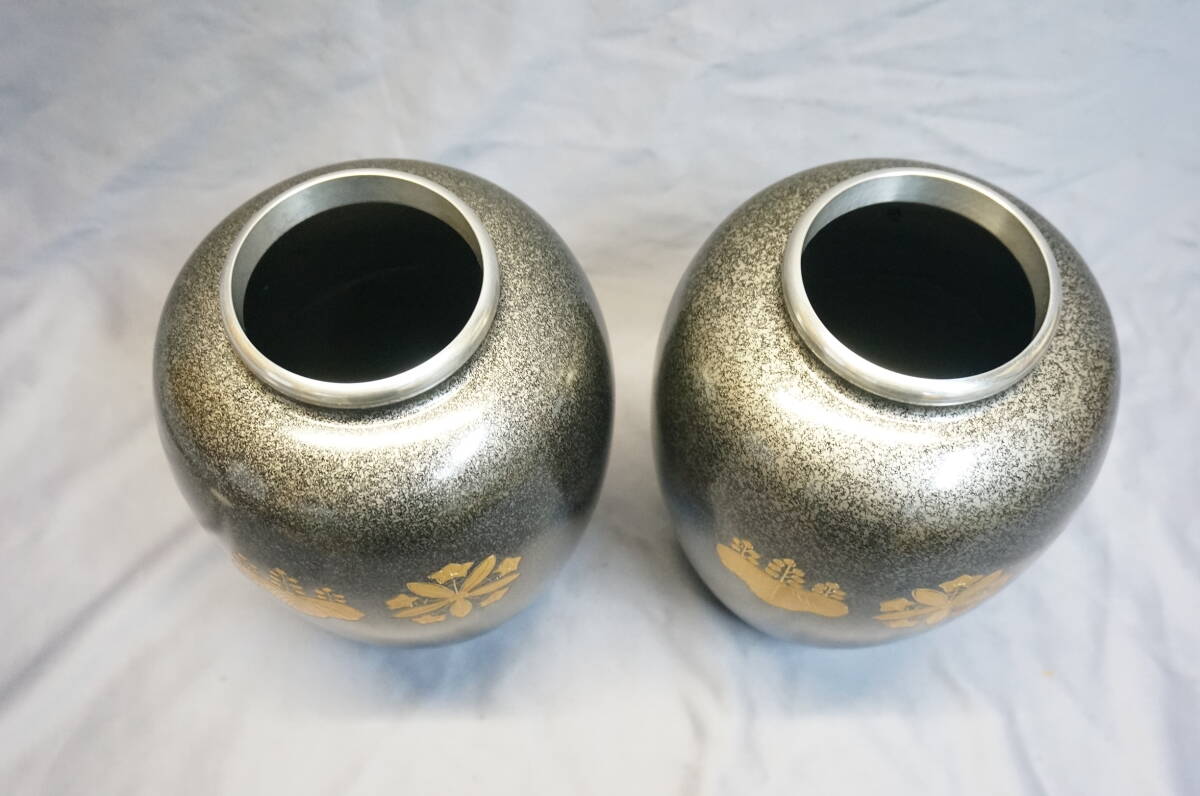 | 仏前用 アルミ製鋳物夏目花瓶 8.0寸 曹洞宗 両山紋入 手彫金 五号色 1対【デッドストック】F159 | ||||