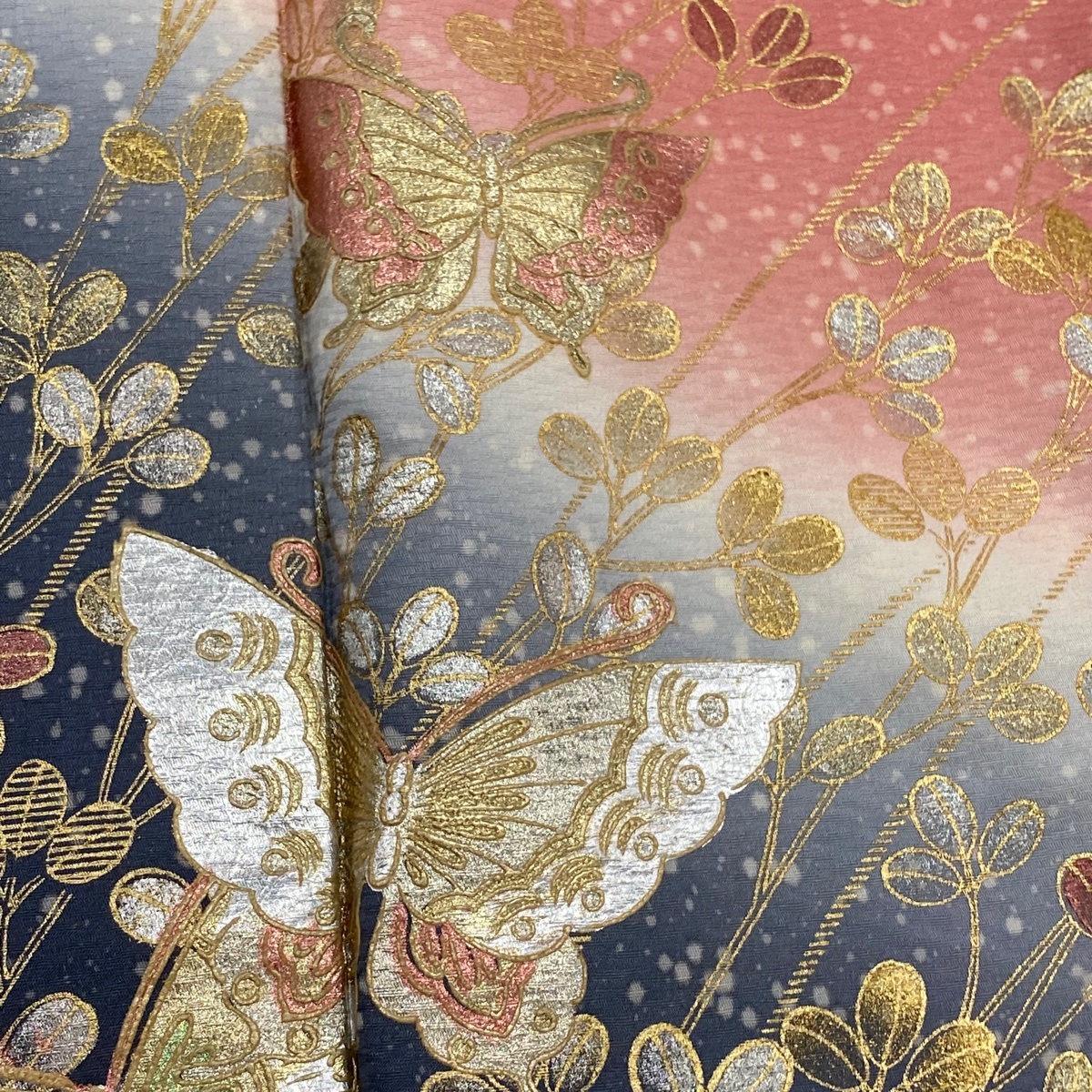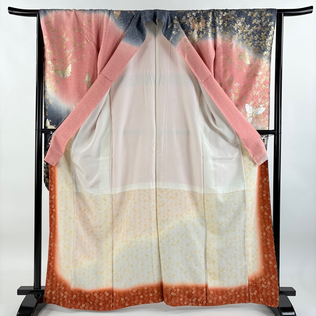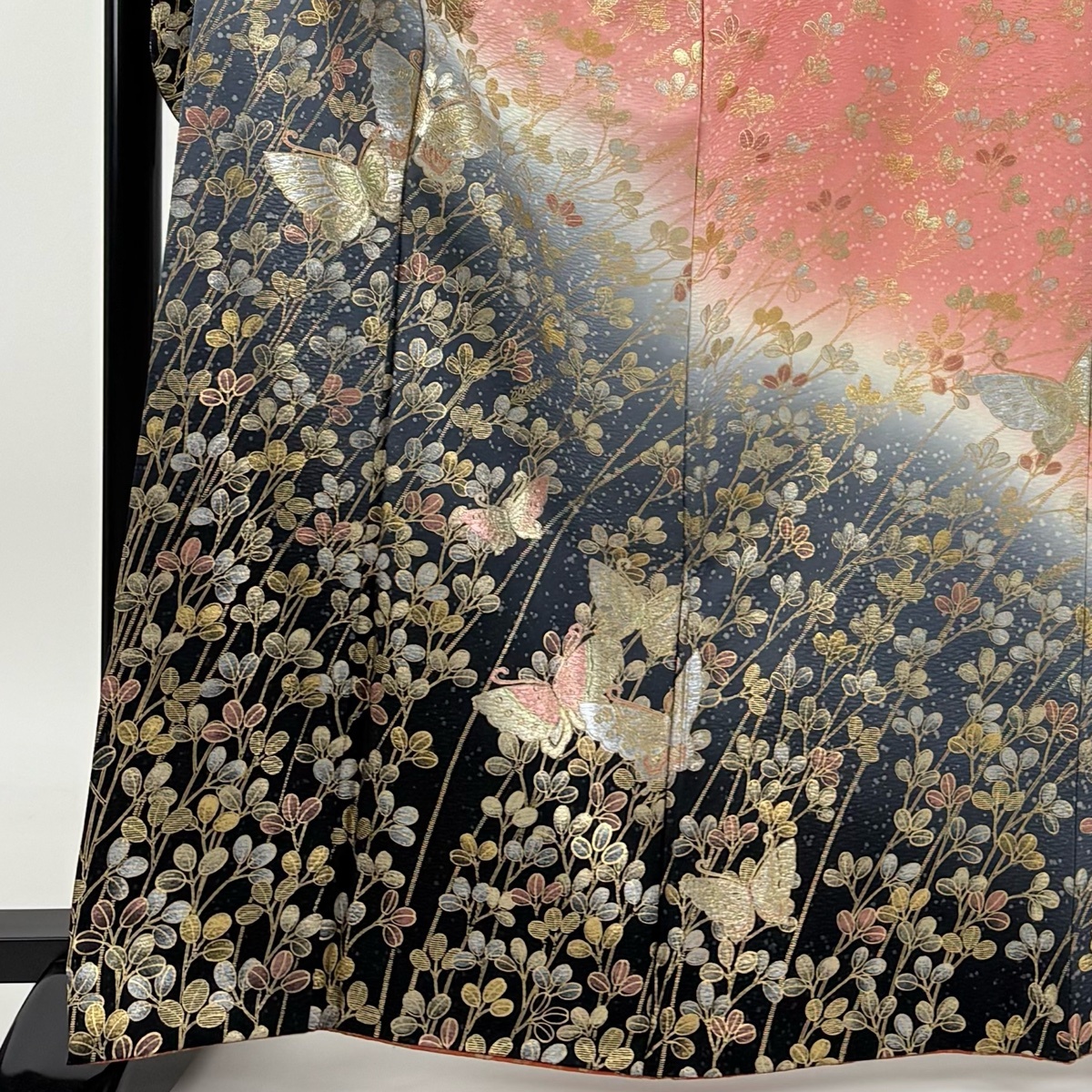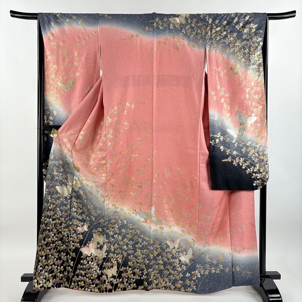 | 振袖 美品 秀品 蝶 萩 金銀彩 染め分け ピンク 袷 身丈165.5 裄丈65 M 正絹 【中古】 |