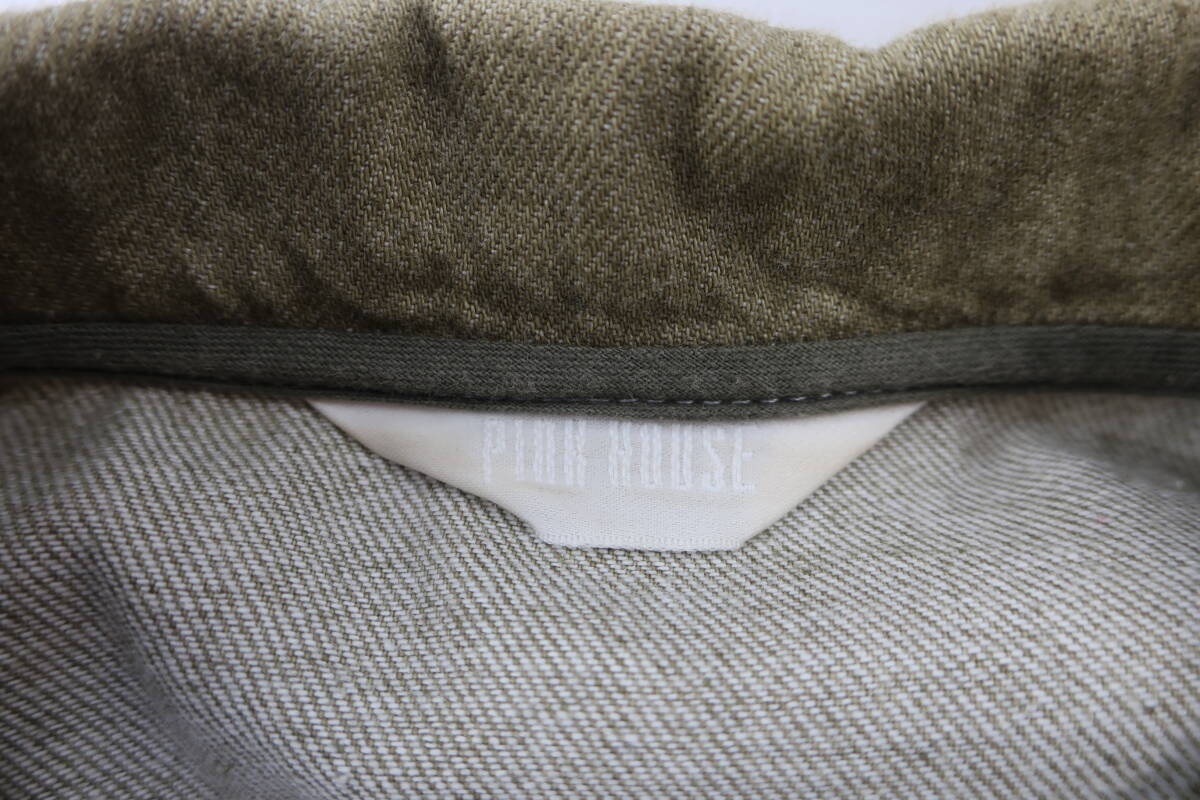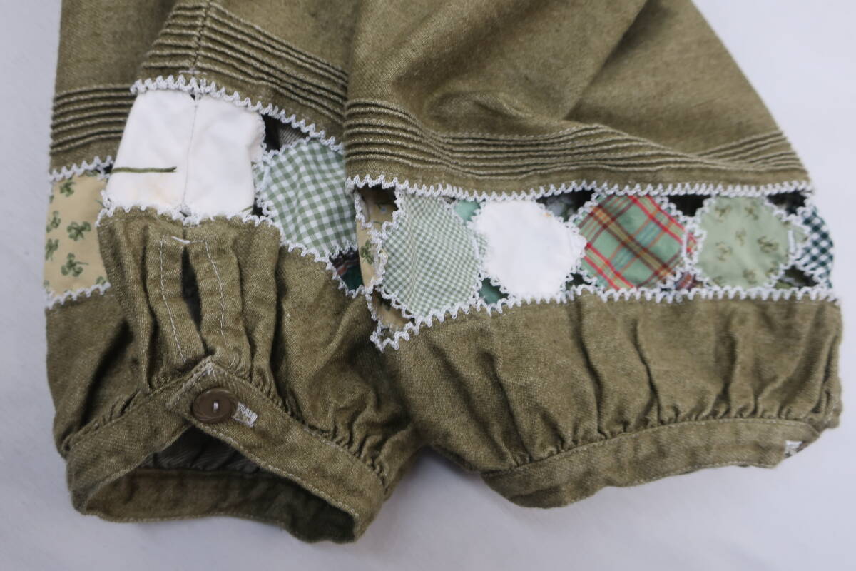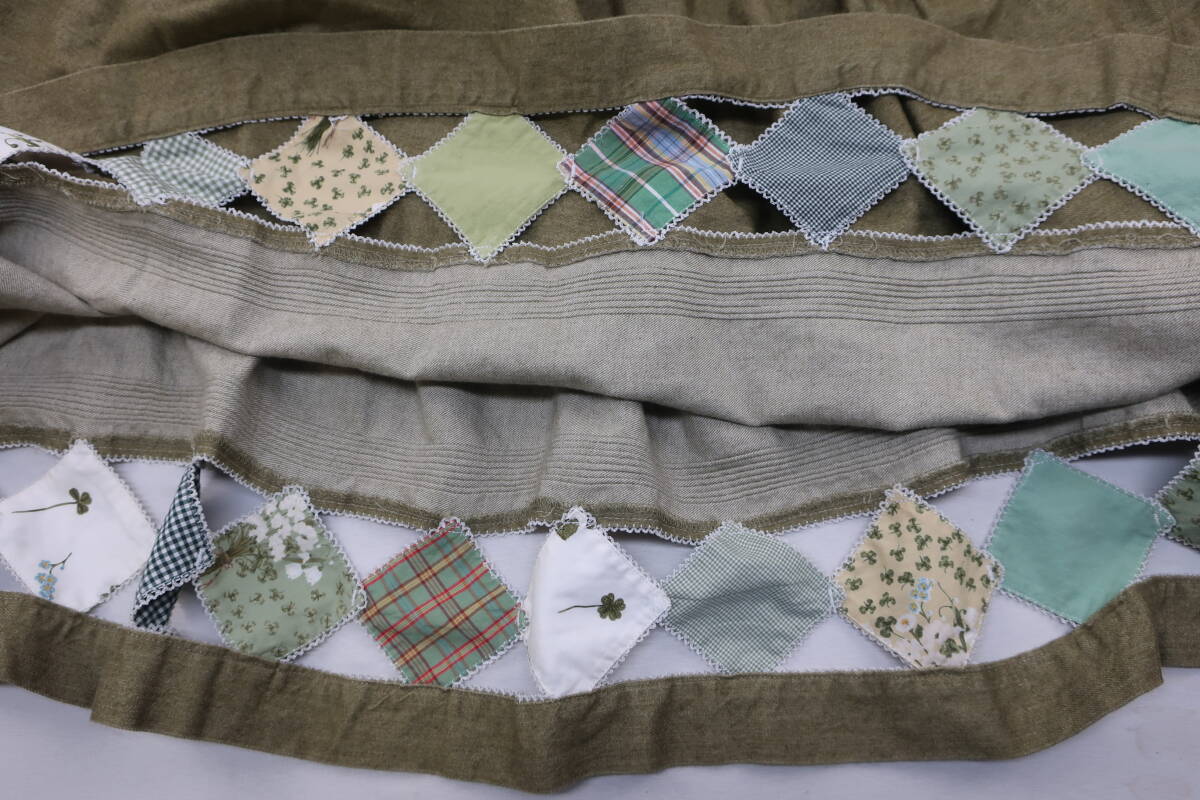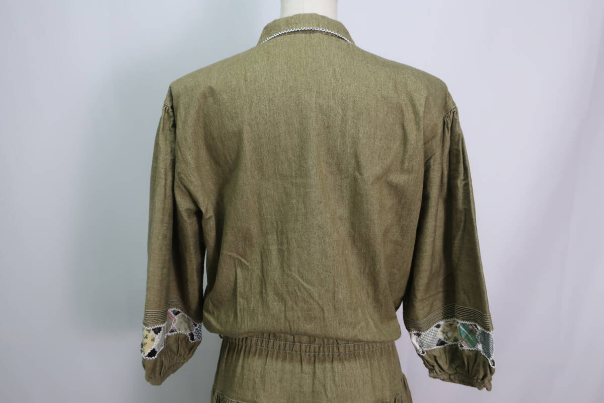【送900円】1086 PINK HOUSE ピンクハウス 肩パッド付き長袖ロングワンピース パッチワークデザイン 襟付き グリーン系 サイズ不明