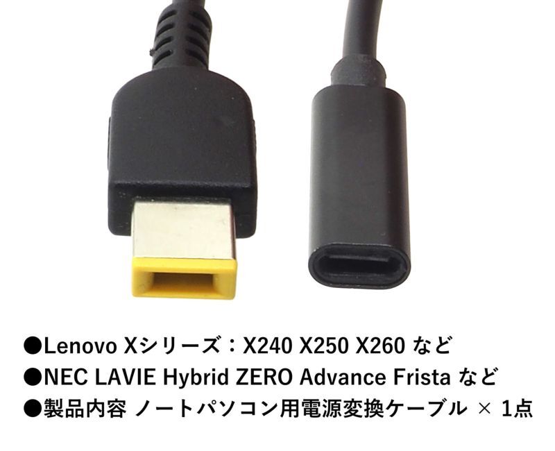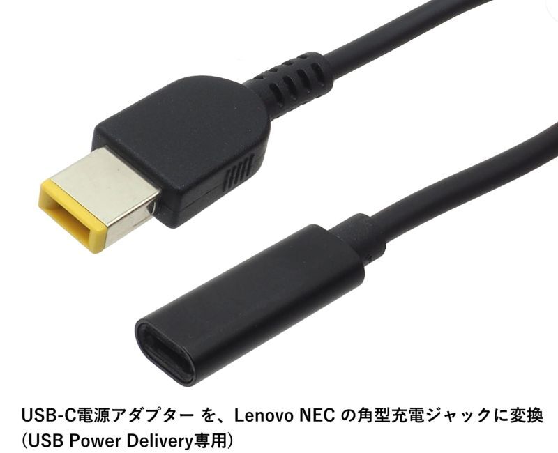 USB-C電源アダプター を、Lenovo NEC の角型充電ジャックに変換(USB Power Delivery対応)65Wまたは87W Type-C充電器と一緒に使用して、コンセントからDC 18V-20Vポートでノートパソコンを便利に充電できます
