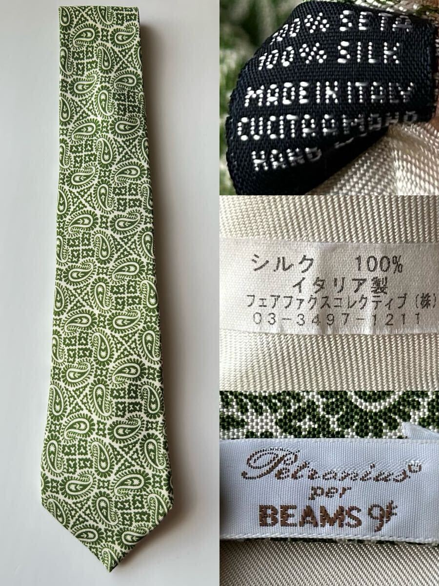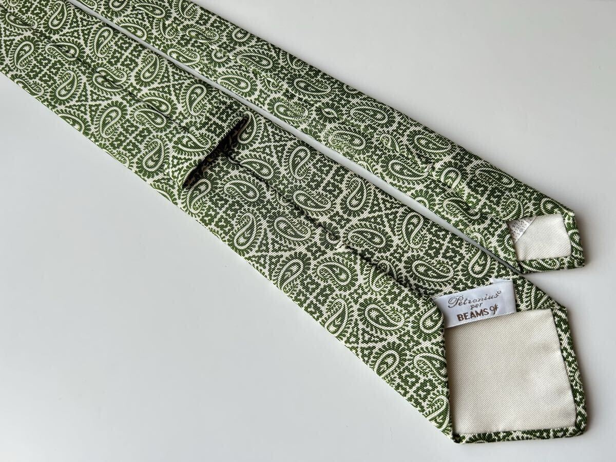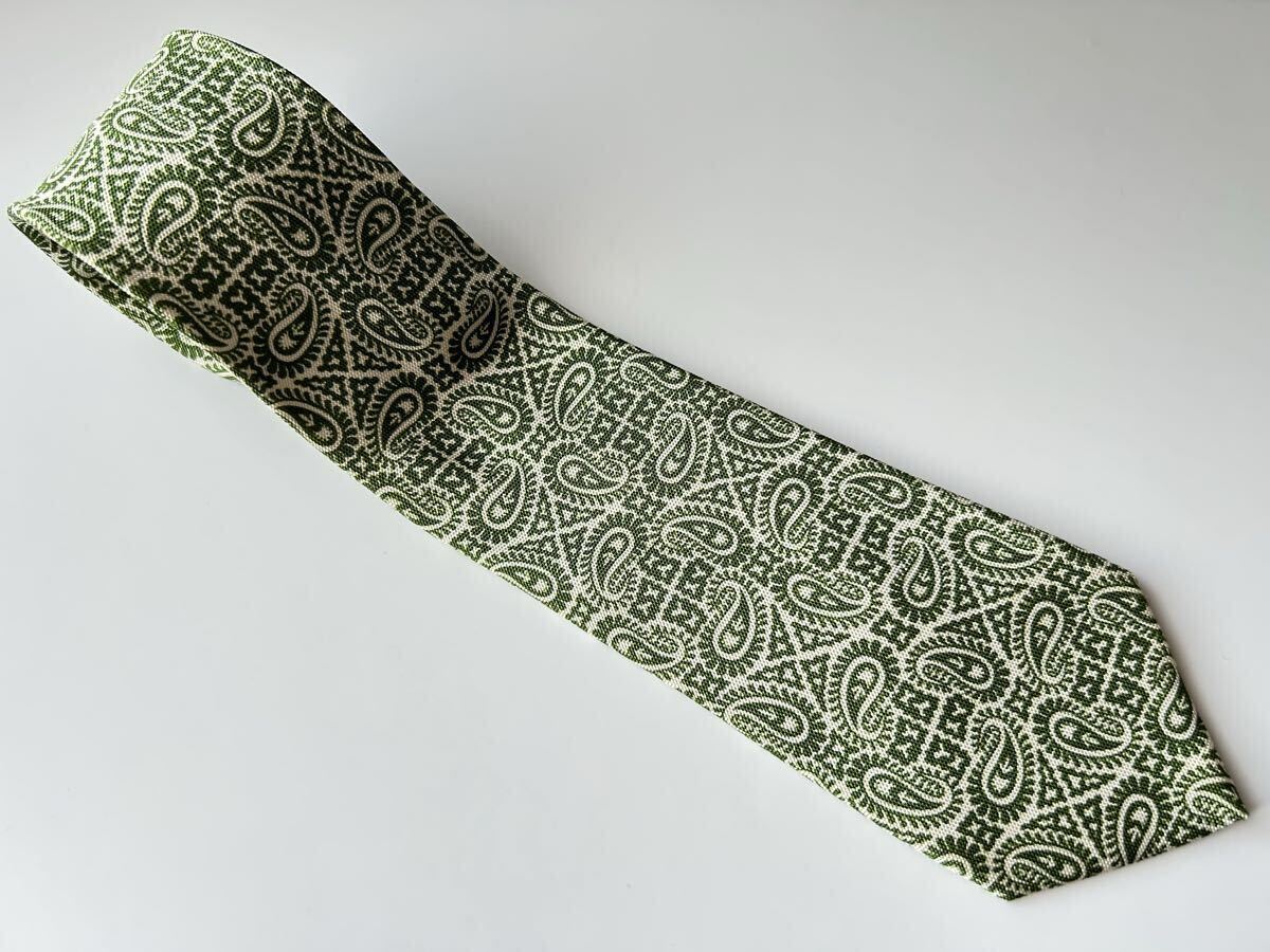 ホワイトベースにグリーンの配色が映えるペイズリータイで、ラグジュアリー感あります。