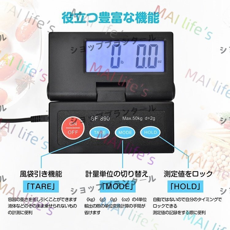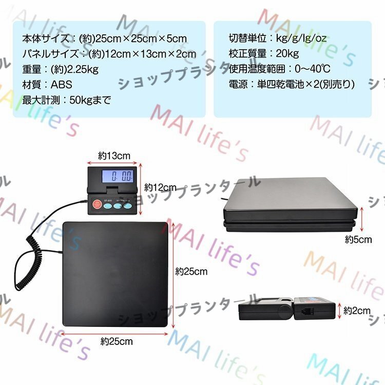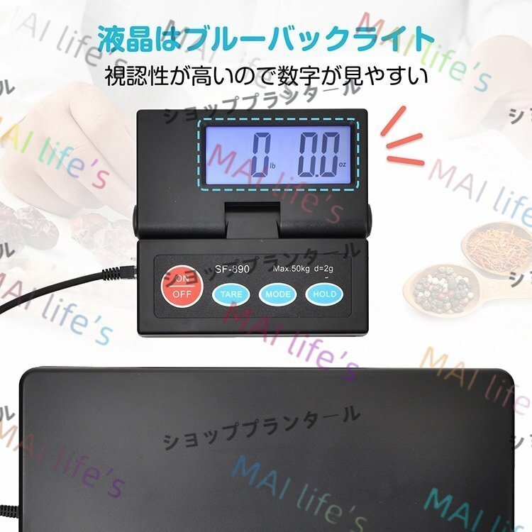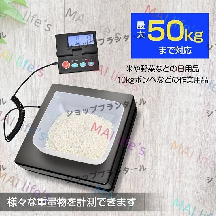 デジタルスケール 台はかり 電子秤 電池式 表示パネル分離型 最大50kg対応 計量単位切替可能 風袋引き機能