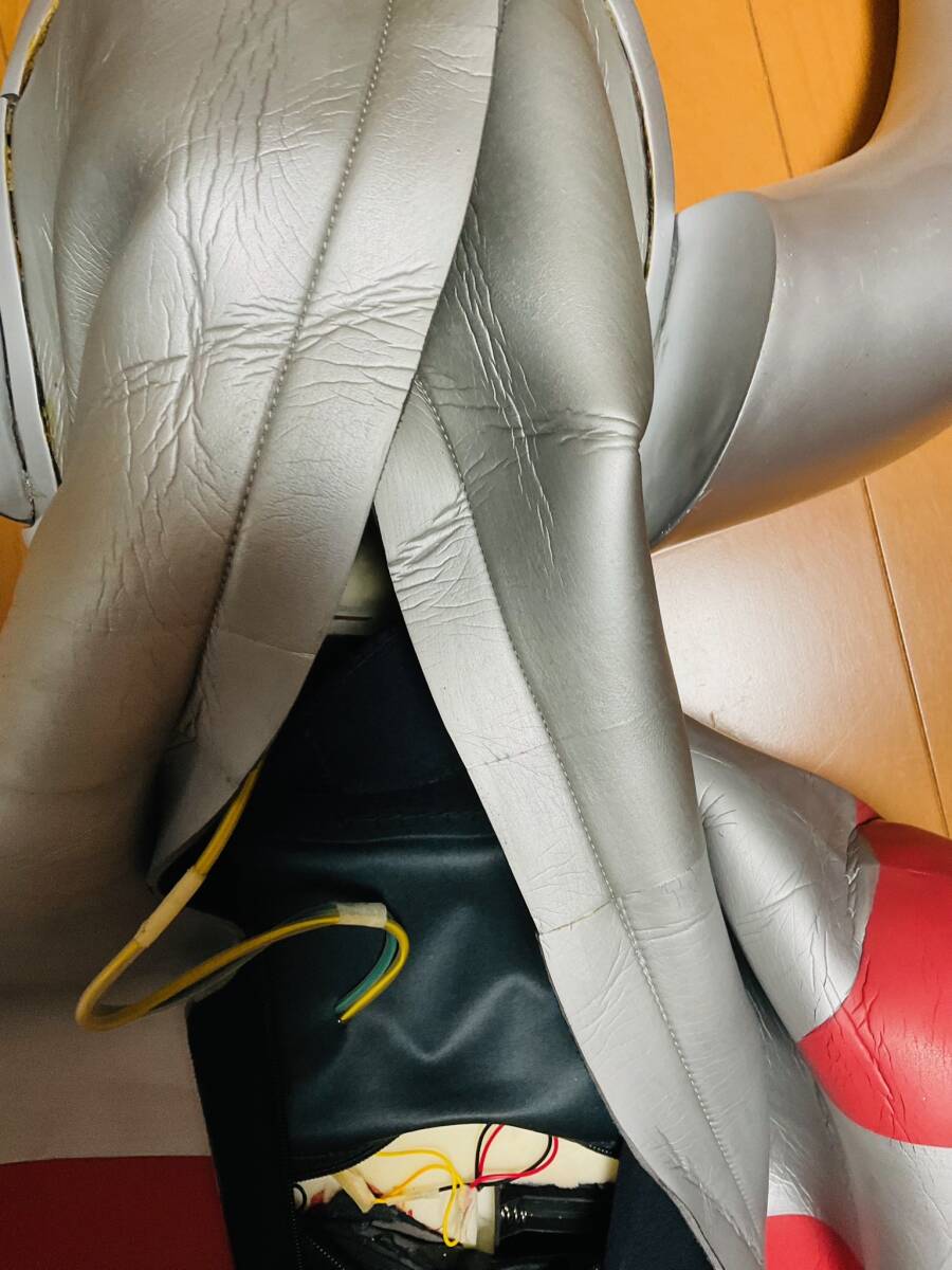 中側の胸から顔にかけて配線があり胸の部分に単三電池のボックスが付いていますが、詳細は不明で点灯等の確認はしていません画像10)