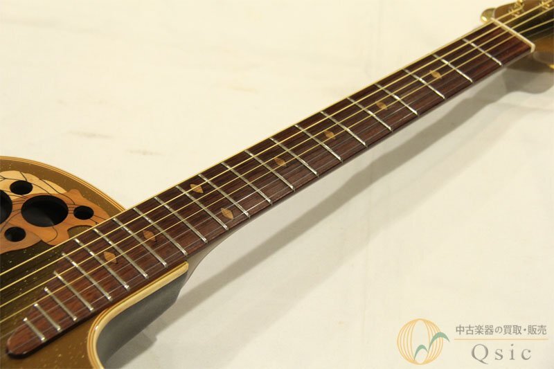 商品説明 | 訳ありの為、格安での出品です! Ovation 5851-9 Gold Starred 1985年頃に100本限定で生産。所々にラメが散りばめられたゴールドの塗装が目を引く5851-9が入荷です! エレキギターから持ち替えても違和感なく使用できる薄いスーパーシャロウボディで人気を博すオベーションの人気シリーズ。カッタウェイ仕様でハイポジションでの演奏も快適です。 リラコード材も相まって、中音域がキュっと締まった歯切れの良い出音が特徴的。生鳴りの要素はどうしても薄くなりますが、しかしエレキでもない”アコギ感”はオベーションならではです。 ピックアップ/プリアンプは人気のOP24。3Band EQによる繊細なサウンドメイクが可能。快適な演奏性と実用性を備えた1本となっております。 今回の個体はトラスロッドがほぼ限界まで締まっており、ネックの調整幅がないこと、ボディのトップ落ちも相まってブリッジが剥がれてきているなど、状態が悪いため特価で販売いたします!ぜひこの機会にお求めください! 【Spec】 Body Top:Solid Spruce Body Side&Back:Lyrachord Neck:Mahogany etc 5p Fingerboard:Rosewood Nut Width:43mm Scale Length:25.4inch Number of Frets:22F Pickups:OP24 【状態】 トップに大きなクラックが発生しています。ボディトップが落ちており、ブリッジもやや剥がれてきている兆候がございます。またその付近の塗装に目立つクラック、ヘッド先端にも目立つ打痕など、使用感が強い状態です。 フレット残り:6割程度 トラスロッド:ほぼ限界 電気系統:問題なし ネック:問題なし 弦高(12フレット):6弦側3.0mm、1弦側2.2mm サドル高:6弦側 3.0mm 1弦側3.0mm ※弦高値は気候などの影響により若干変動いたします。直近の詳しい数値はお気軽にお問い合わせください。 ~~ココが訳あり~~ ・トラスロッドがほぼ限界まで締まっている状態です。 ・ボディにトップ落ちの症状が発生しており、 ブリッジがやや剥がれかかっている兆候が見られ、現状1mm程度の浮きが発生しています。浮いている付近の塗装が大きく割れています。 上記の理由によりジャンク品として出品いたします。 こちらのお品は未調整のため、初期不良保証対象外です。 また、細部まで十分なチェックもおこなっておりません。 説明文にない不具合・不良・欠品も含めて、いかなる場合でも初期不良保証や返品はお受けいたしかねます。 これらについて予めご納得いただける方のみご入札ください。 「万が一、気に入らなければ返品OK!」で大変ご好評をいただいております、 通信販売における最大のご不安を払拭した『納得購入サポート™』ですが、 ヤフオク!におきましては、2020年2月1日よりサービスの提供を終了いたしました。 詳しくは、ヤフオク!でのサービス終了のお知らせ をご覧ください。 ヤフオク!でのご落札品は、当サービスの提供対象外でございます。 |