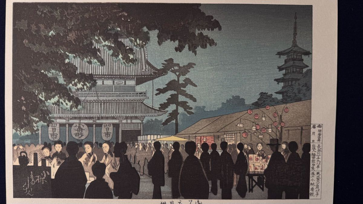 真作 小林清親 『浅草夜見世』 力強い摺りの木版画です 木版画 光線画 東京名所図 錦画 浮世絵 美人画 広重 巴水 吉田博 井上安治