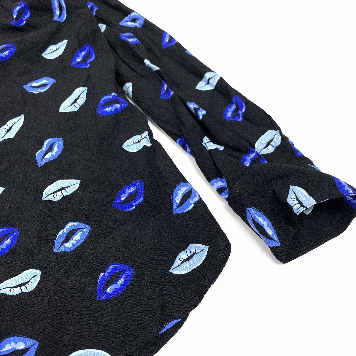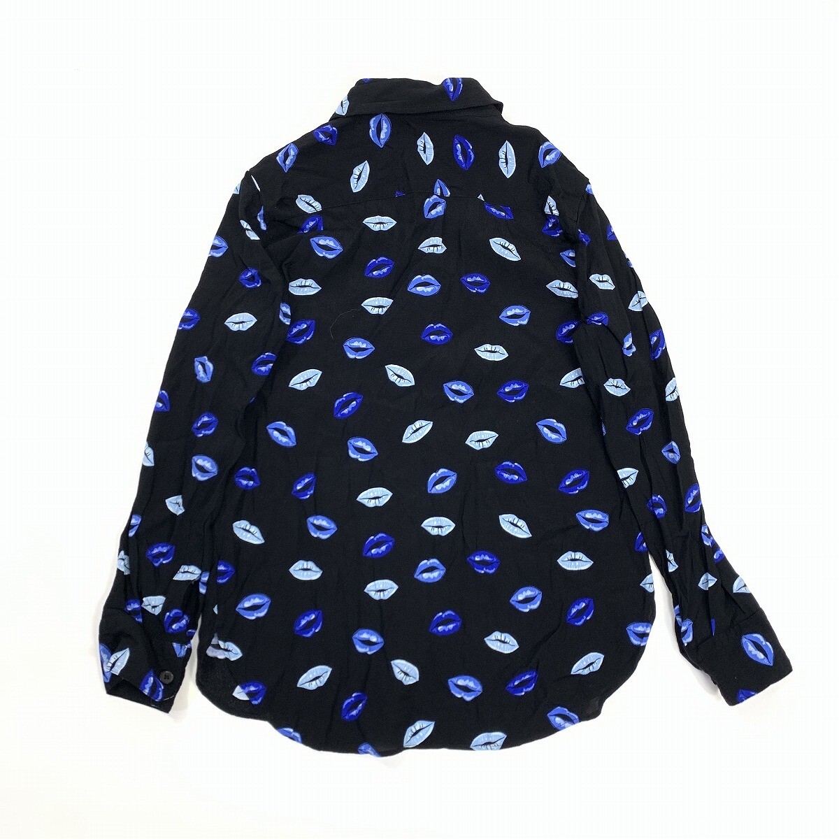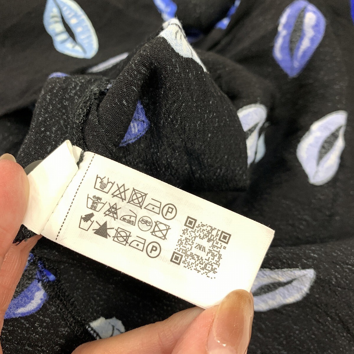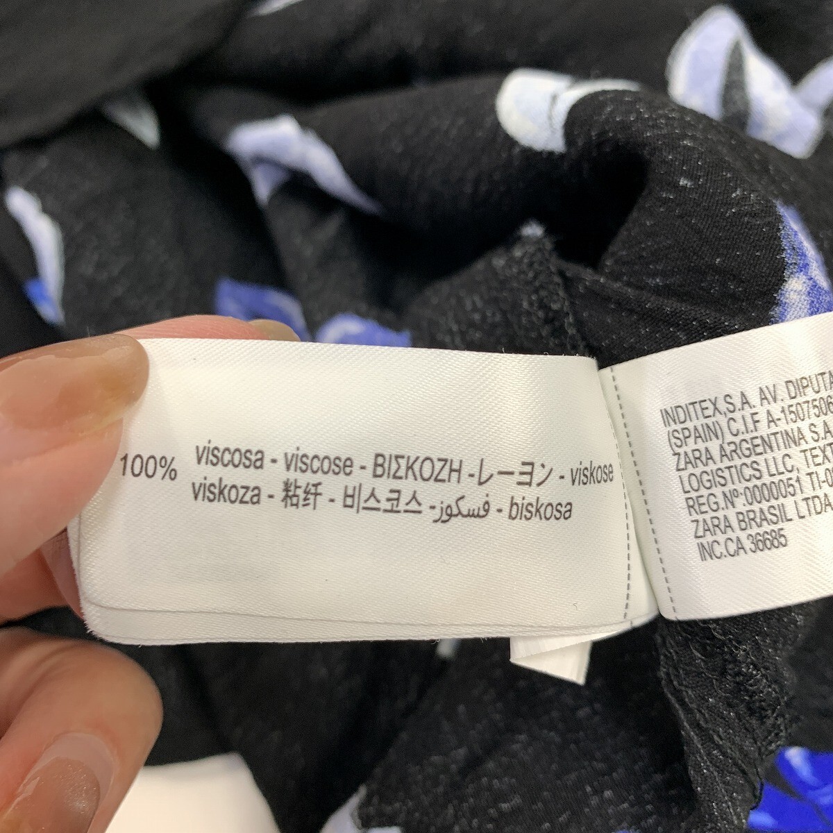 ZARA ザラ 長袖シャツ ブラウス 総柄 黒 青 ブラック ブルー S YC1099