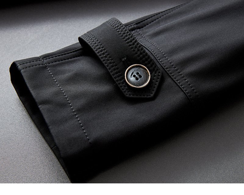 トレンチコートメンズ ミドル丈 80cm Pコート ダブル ベルト ビジネス フォーマル ミリタリー チェック裏地 ブラック 通勤 紳士服 春秋