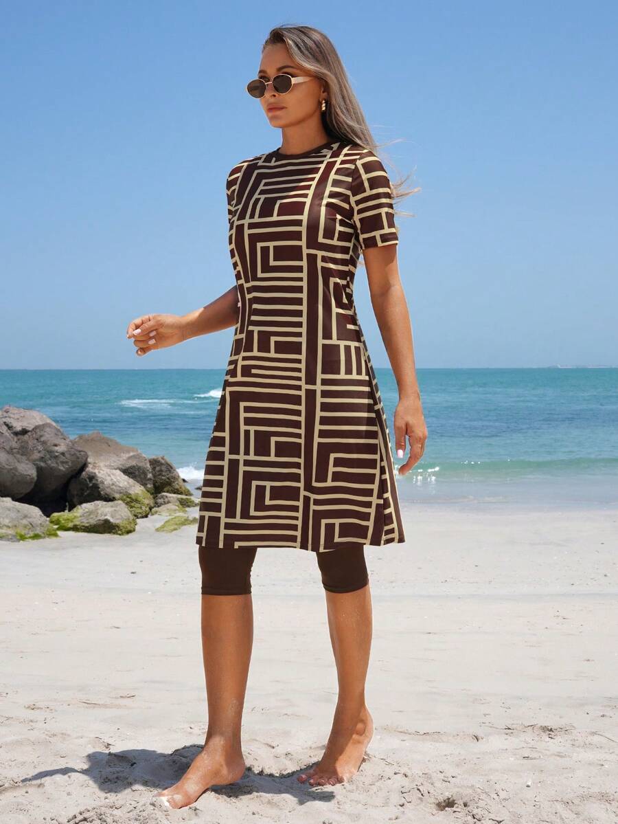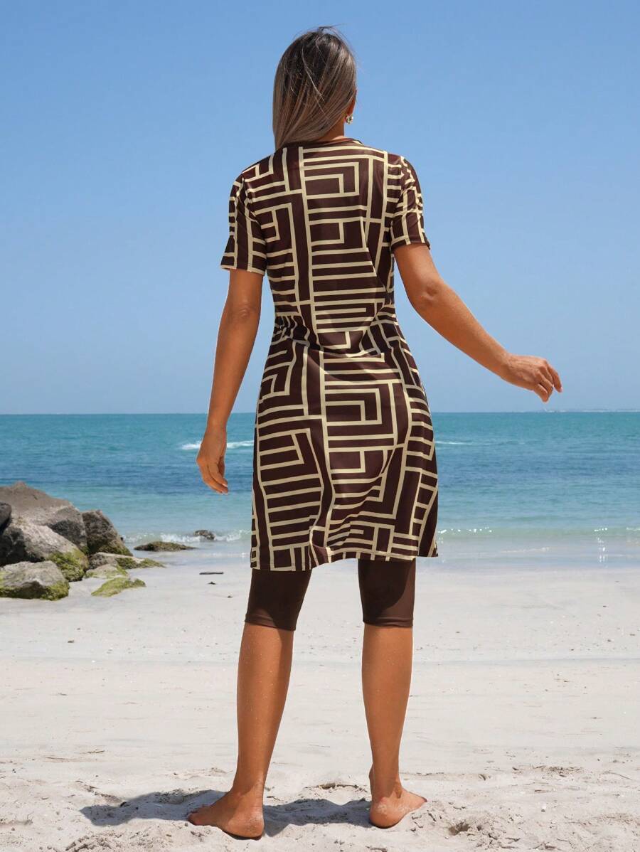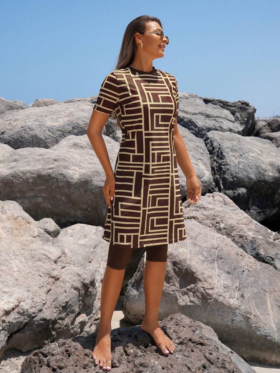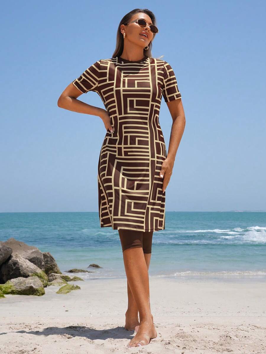 レディース 水着 ワンピース 2枚セット レディース夏 ビーチ ホリデー柄 プリント水着