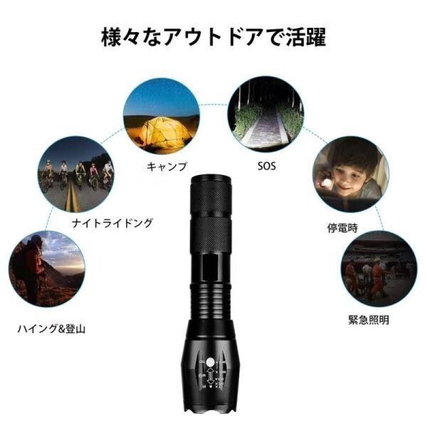 【国内発送】 【高輝度led懐中電灯】CREE社高輝度XM-L T6 LED搭載し、照射距離最大約500m。アウトドア、キャンプ、停電、防災などの場合に最適です。