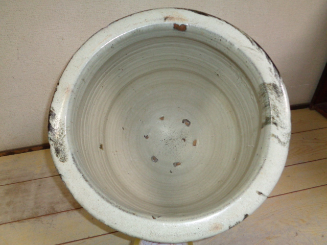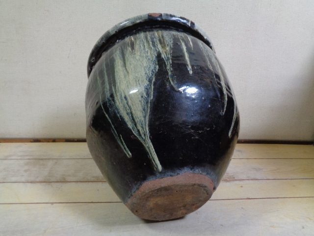 希少 造り酒屋の水瓶 海鼠釉 内中白釉 仙台堤焼 甕 鉢 黒釉 明治期 時代物 古民家カフェ インテリア オブジェ 花器 店舗 陶器