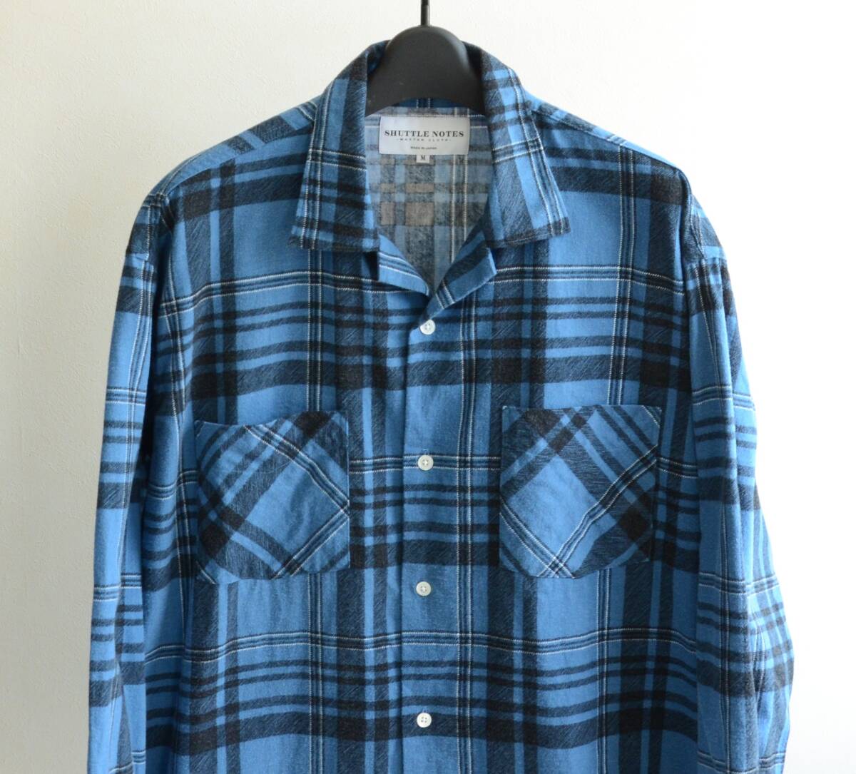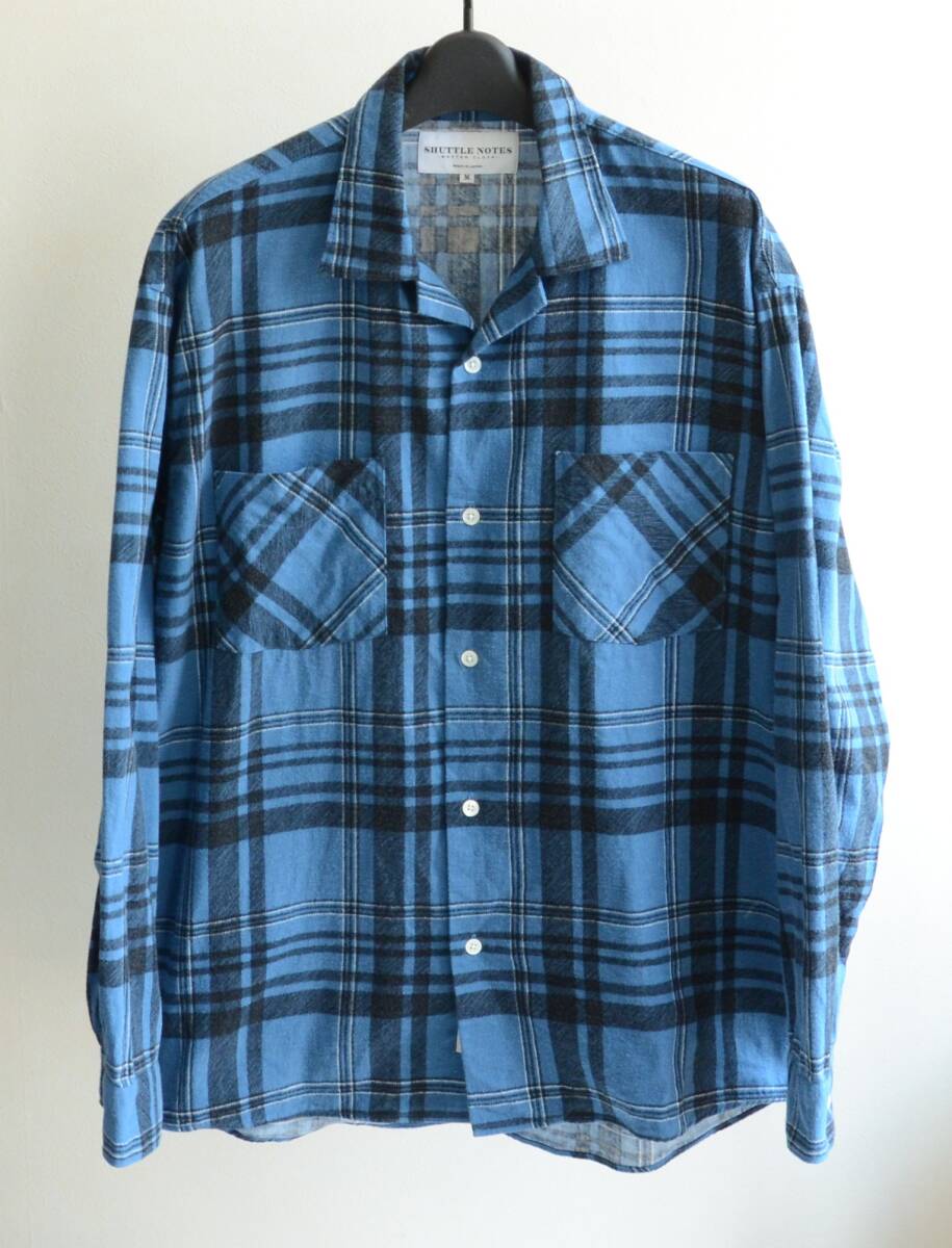 美品 日本製 Shuttle notes プリント フランネルシャツ size M ブルー