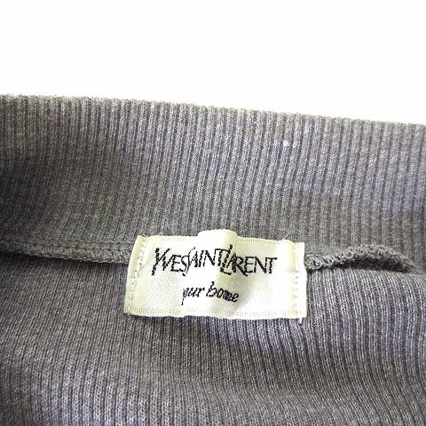 イヴサンローラン YVES SAINT LAURENT pour homme 90’S ヴィンテージ ニット カットソー シャツ 長袖 モックネック ロゴ刺繍 L グレー
