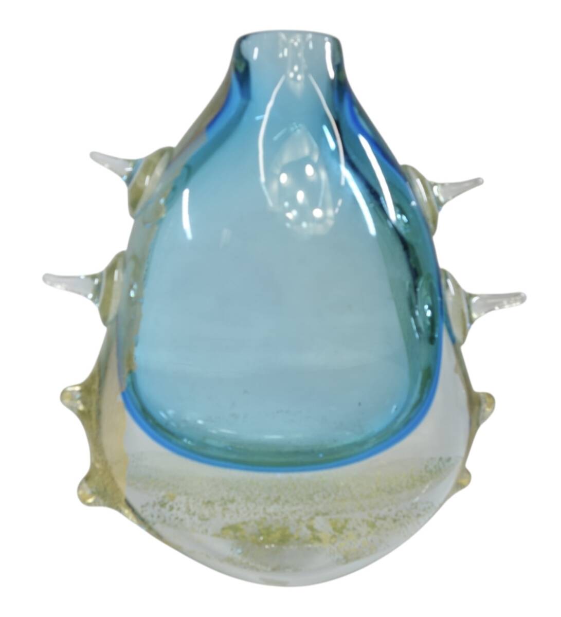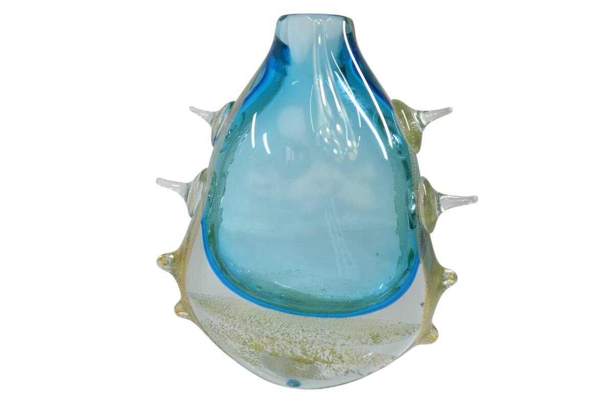 両側に突起状の装飾を施したモダンなアートガラス花瓶です。