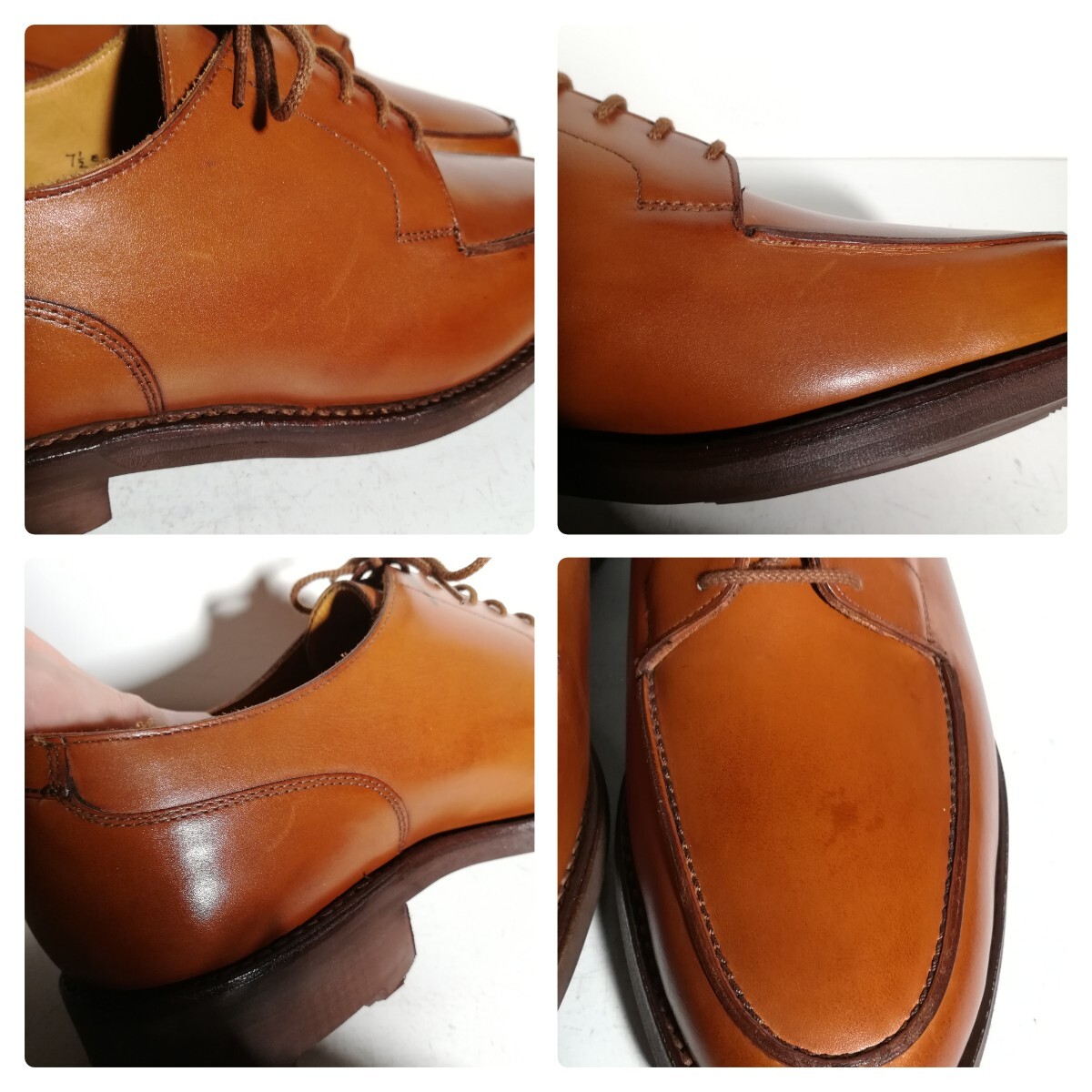 | 商品説明 | 埼玉県からの発送になります。 おてがる配送 宅急便にて発送致します。 発送は落札してから1~3日見ていただければと思います。諸事情により発送が遅れる可能性がございます。 クロケット&ジョーンズ Uチップシューズです。 商品詳細 お色 ライトブラウン サイズ 7 1/2E アウトソール全長約29.7cm 全幅 約10.9cm (素人採寸ですので多少の誤差はご容赦ください) ●状態①「外観」 履きジワ、全体的に擦れ傷、シミ汚れがございますが、試着されている程度の状態です。 ●状態②「ソール・インナー」 ・インソールロゴは綺麗に残っています。 ・踵の削れは1mmもありません。 ●その他・付属等 クロケット&ジョーンズの箱と袋をお付けします。 神経質な方はご購入はお控えくださいますようお願い致します。 こちらに重大な過失があった場合のみ返品可(それ以外のサイズ違い等といった理由は不可。) また、お届けしてから1週間以上経過した物についても不可とさせていただきます。上記返品期限経過後の取引ナビ等々からの返品についてのご連絡に関しては対応致し兼ねますのでご了承ください。 出品商品に関しましては他で譲り先が見つかった、在庫処分等の理由で予告無く出品を取り下げる場合もございますので、予めご了承ください。 ※領収書の発行は受け付けておりません。 見落としている傷や汚れ、また中古品などには検品時に気づけないような経年の使用や保管による内部劣化や消耗などがある可能性が御座います。また、シューキーパーを入れて撮影しておりますので実際と印象が異なる場合がございます。 重ねてになりますが、ご理解のある方だけ、ご入札下さいませ。 商品はプチプチに包装して発送致します。スエード素材の商品はプチプチの跡が付く可能性がございますので、ブラシや手で均していただくようお願い致します。 商品写真は撮影時の明るさや光の当たり具合、お使いのディスプレイ(彩度、明るさの設定)等によって、実物の色味と差が生じる場合がございます。 また、当方は素人ですので予めご了承ください。 他にも様々出品しておりますので、どうぞご覧ください ↑↑↑↑↑↑↑↑↑↑↑↑↑↑↑↑ ■決済金額・決済方法■ 【決済金額】 落札価格+送料が決済金額となります。 【決済方法】Yahoo!かんたん決済(クレジットカード、コンビニ、銀行振込、PayPay等々)にてお支払いください。 Yahoo!かんたん決済お支払い期限内にお支払いお願い致します。 ご落札頂いた際にこちらから連絡をすることは基本的にはございません。重要な連絡事項がある場合はご連絡しますのでよろしくお願い致します。 ●お問い合わせ等、気づかないことがあり即答できない場合がありますので、あらかじめご了承ください。 また、対面や電話でのお取引やご対応は承っておりません。 以上の内容をご理解して頂いた方のみ入札下さい。 埼玉県公安委員会古物商許可衣類商 (写真機類・事務機器類・道具類・機械工具類・皮革ゴム類) 第431070035500号 |