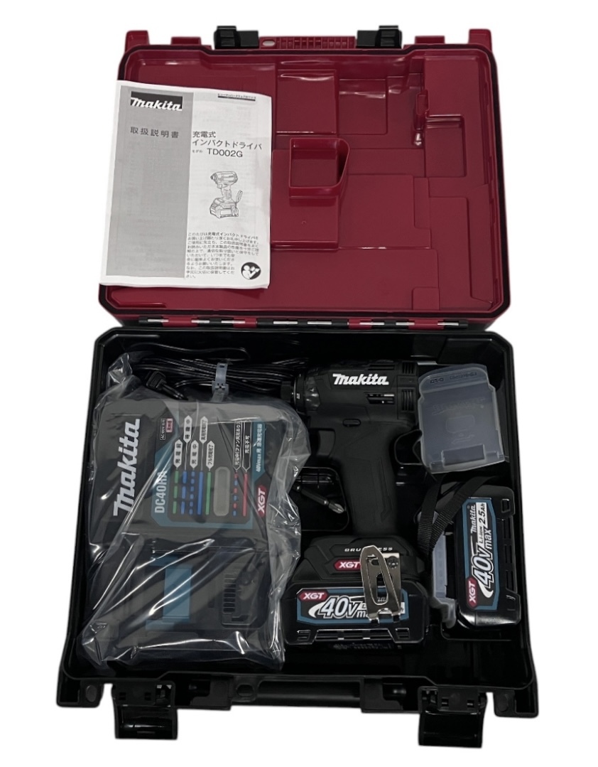 【新品未使用品】makita マキタ TD002GRDXB 40V 2.5Ah 充電式インパクトドライバ ブラック バッテリー2個 充電器 ケース 電動工具 9746