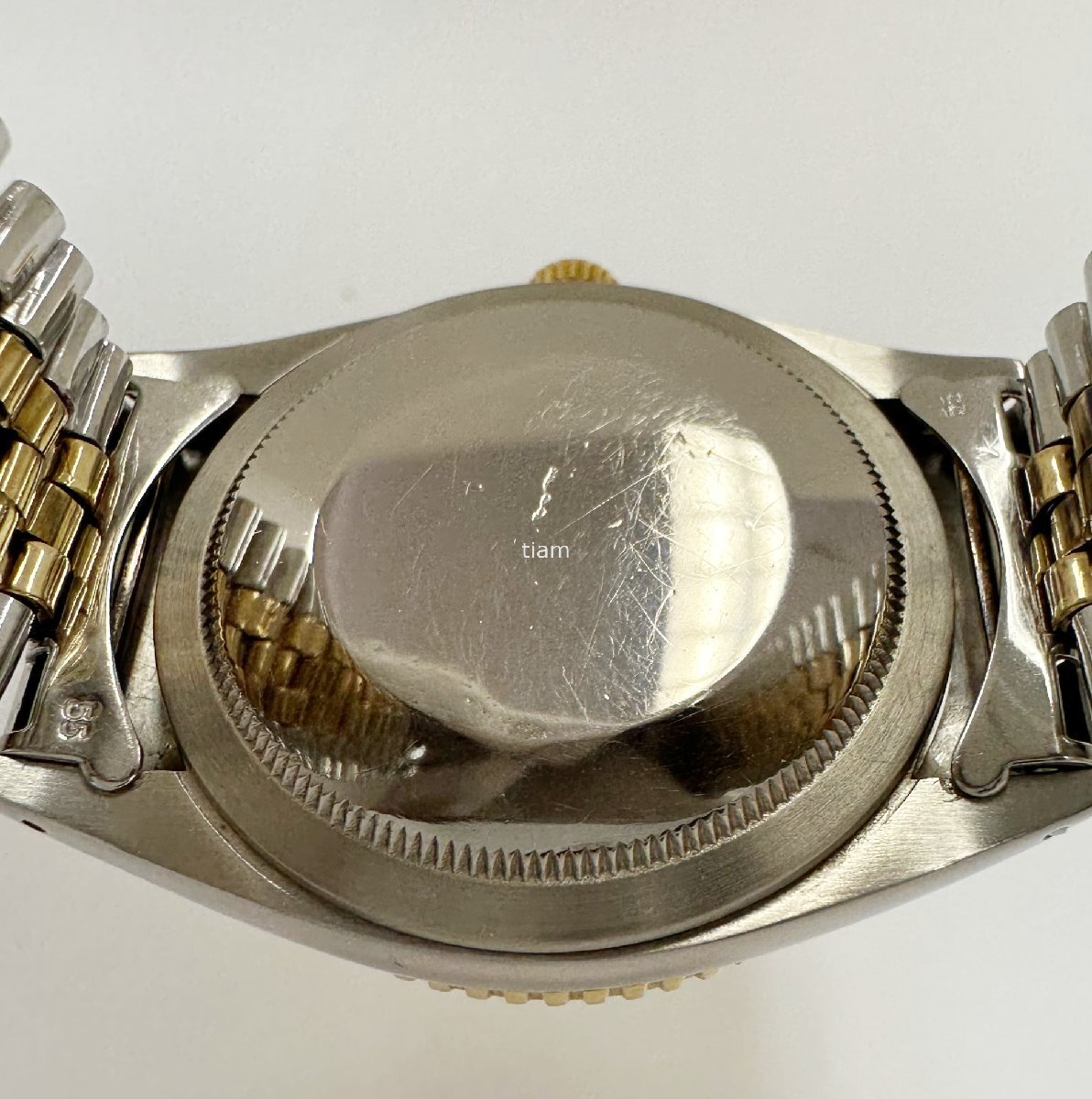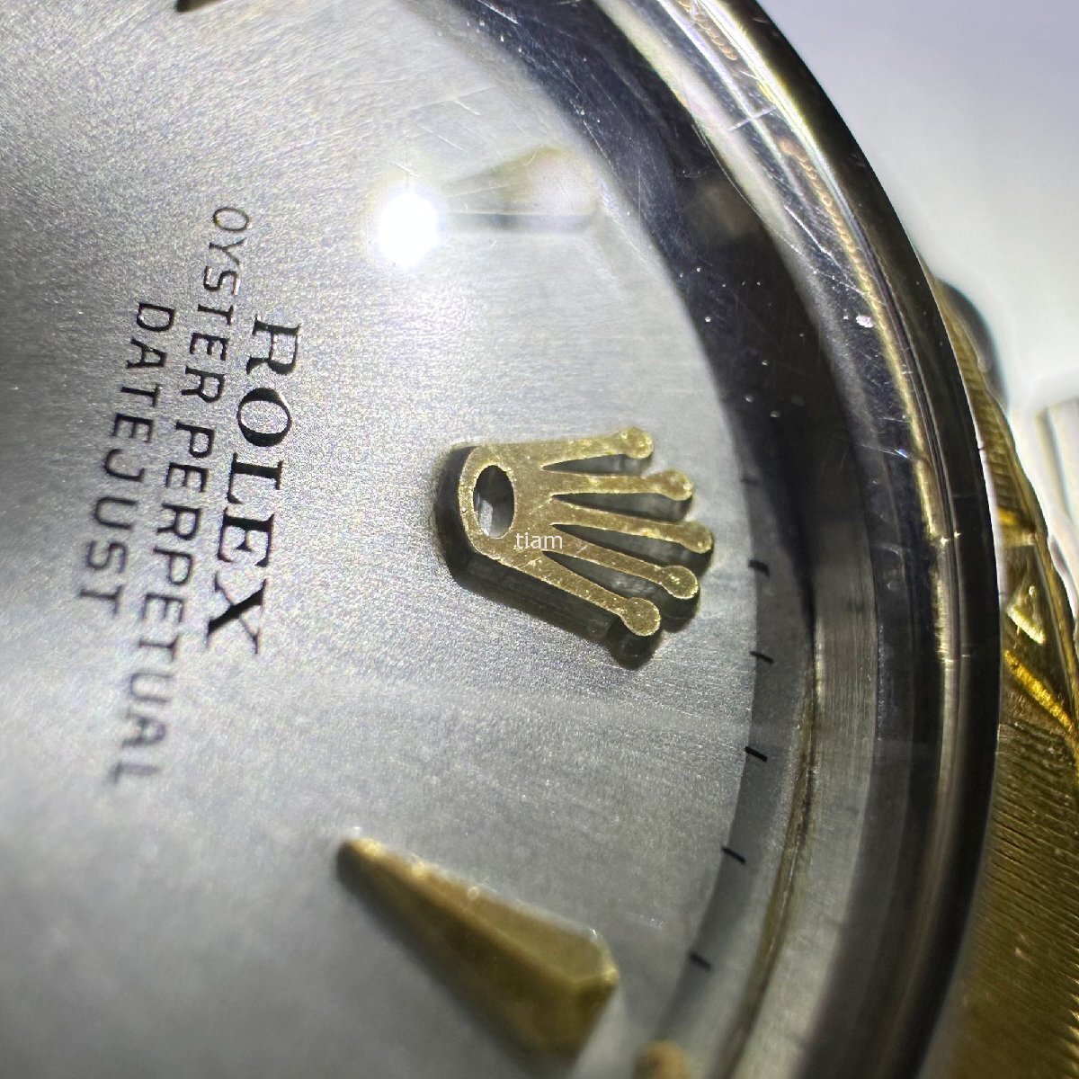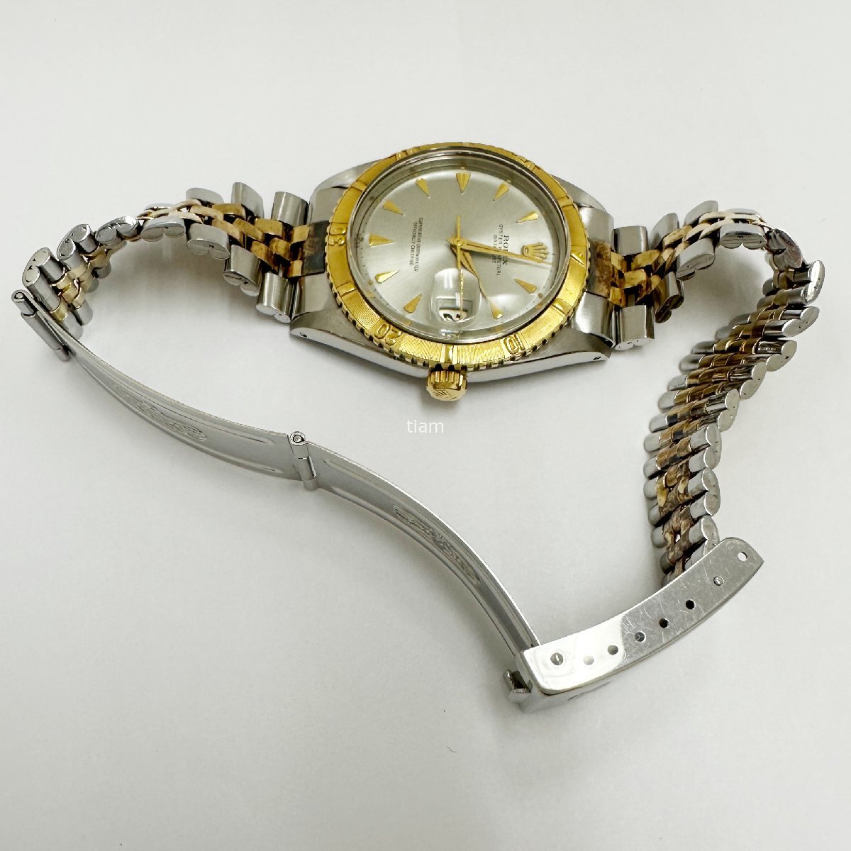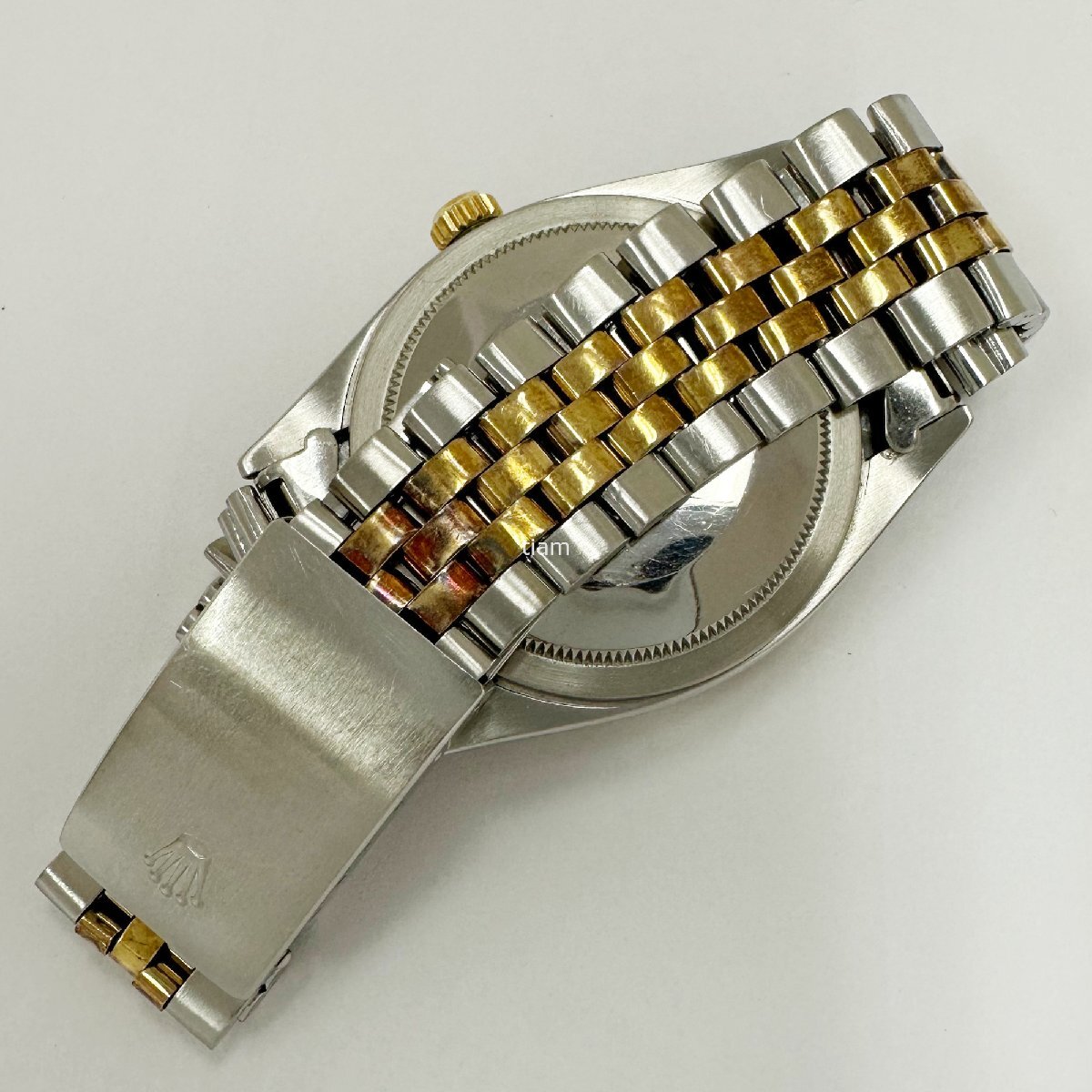| ガラス: 表面小傷がございます。 ダイヤル/針: 針劣化、ダイヤルにシミ、フチに黒ずみがございます。 ケース/ベゼル: 小傷がございます。 ブレス: ヨレが強くございます。金の変色がございます。 その他: | ||