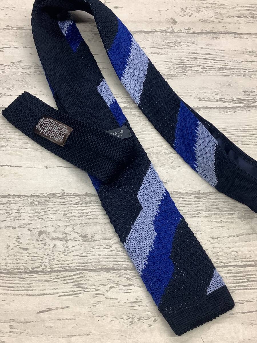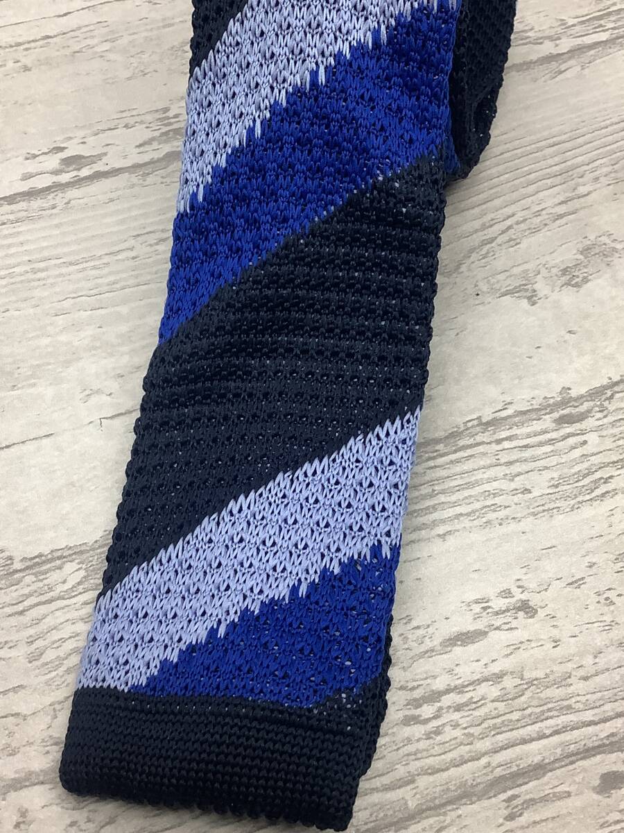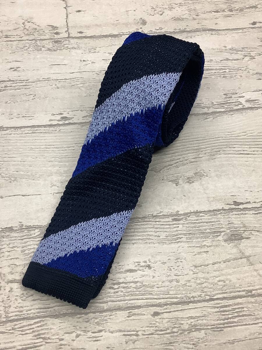 新作 新品未使用  ニットタイ 珍しいストライプ柄 ネイビーブルー系 大剣6cm お買い得サービス