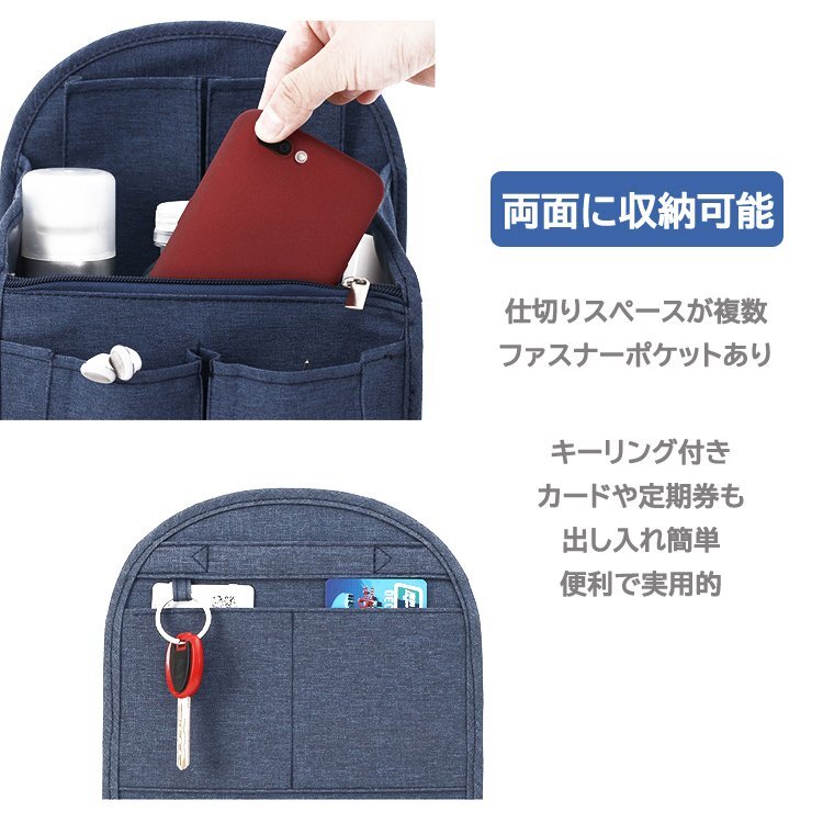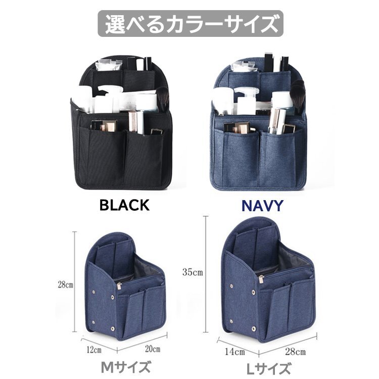 ◆リュック向けバッグインバッグ M L選択可 縦型 自立 大容量 両面マルチ収納 インナーバッグ 仕切りポケット 整理整頓 オックスフォード 軽量 防水 持ち運び便利【ブラック M】RBIB195