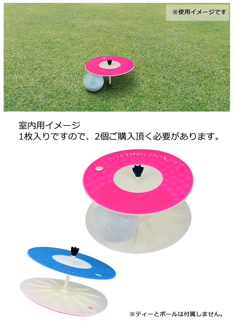 室内などティーをさせない場所では、パッティングドーナツを2個使用して、中央の穴にティーをさし2個のパッティングドーナツをつなぎ合わせ、その間をボールのサイズに合わせてください。
