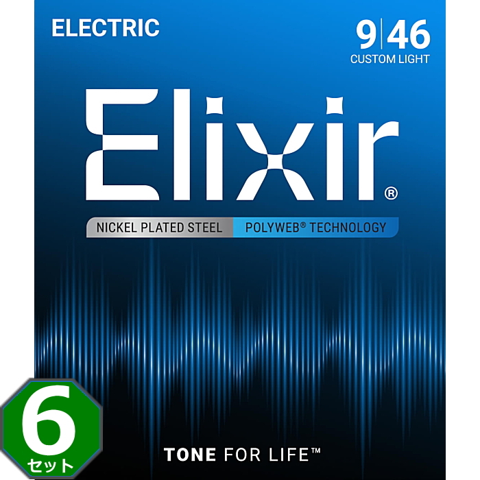 6セット Elixir Polyweb #12025 Custom Light 009-046 エリクサー コーティング弦 エレキギター弦