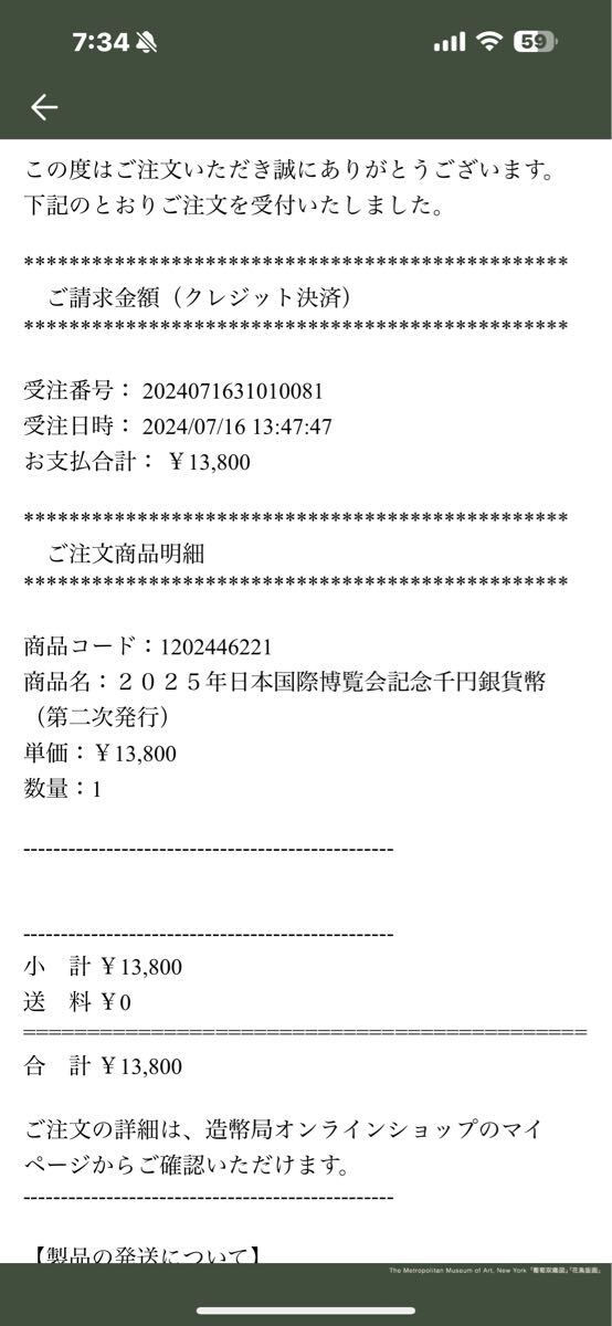 写真撮影の為、開封しました。ミャクミャクにハートがあしらわれた貴重な第二次発行貨幣です。私が当選した証に、造幣局サイトでの支払い画面のスクリーンショットを載せています。