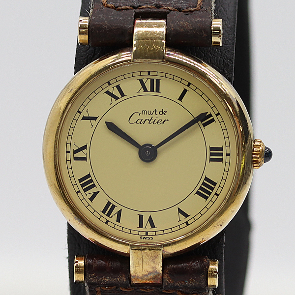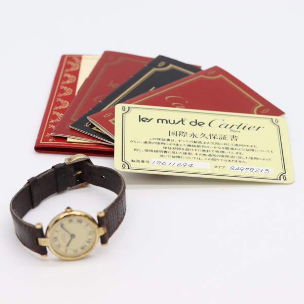 1円 永久保証付 カルティエ マストヴァンドーム QZ アイボリー文字盤 レディース腕時計 8087800 8DIT KTS 16498