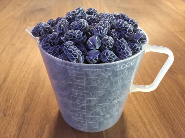 以前から飼育に使っている螺旋型の塩化ビニール製のろ過材です。ザラザラとした表面で一粒にヒダヒダが多く表面積を効率よく広げる事で生物濾過能力を発揮します。さらにこの隙間の多さが水の流れを無駄に滞らせず高い通水性を保ちつつスムーズ濾過する事ができます。フジノスパイラルのこのヒダにより起こる乱流は物理濾過においても大きな影響を与えています。フジノスパイラルを通過する際に渦巻きが起こる事によって水中の浮遊物はフジノスパイラルの中心にある空洞に集まってきてそこに滞留します。