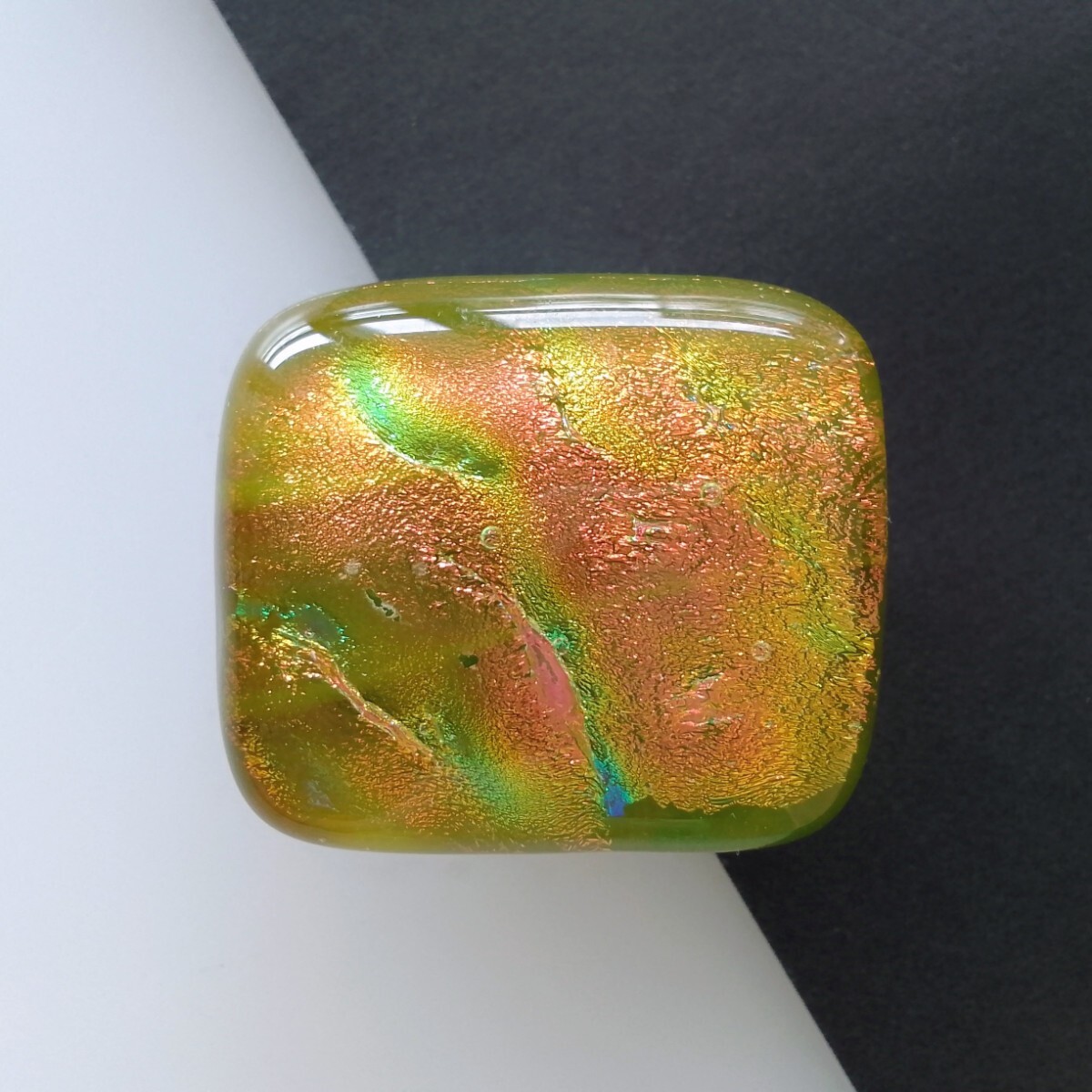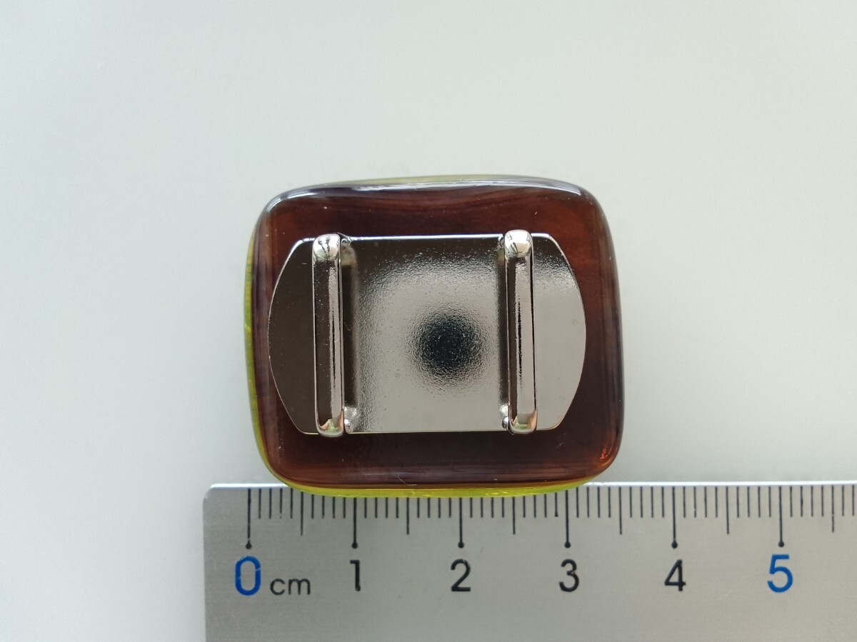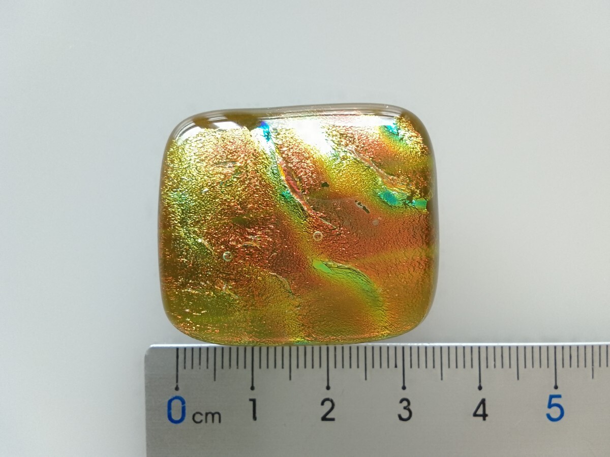 ガラスの帯留め。美しいダイクロガラス。横巾32,3㎜。縦巾27,6㎜。重さ約19,3g。ガラスの厚み9,9㎜。 和装小物。ハンドメイド