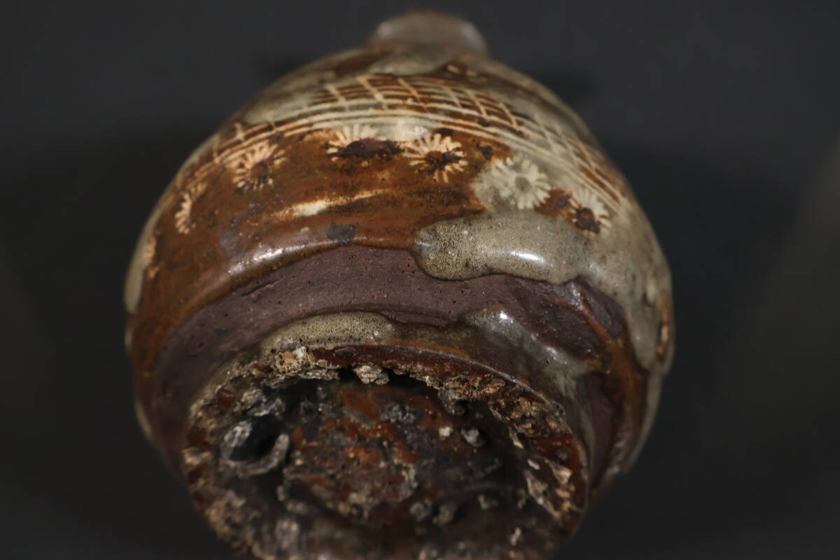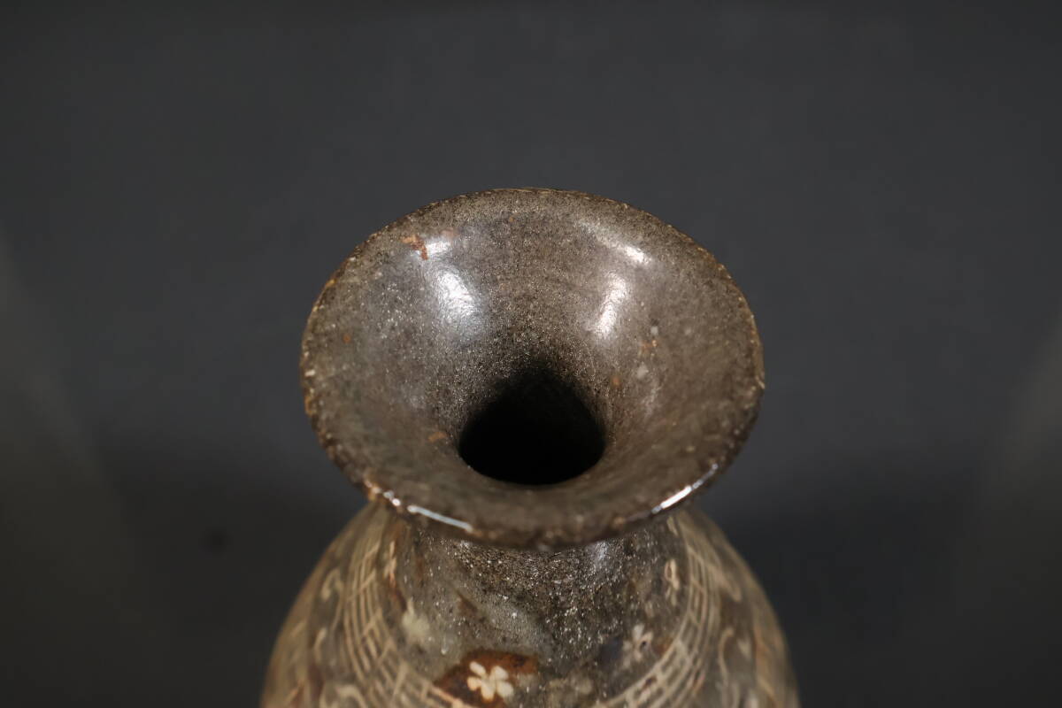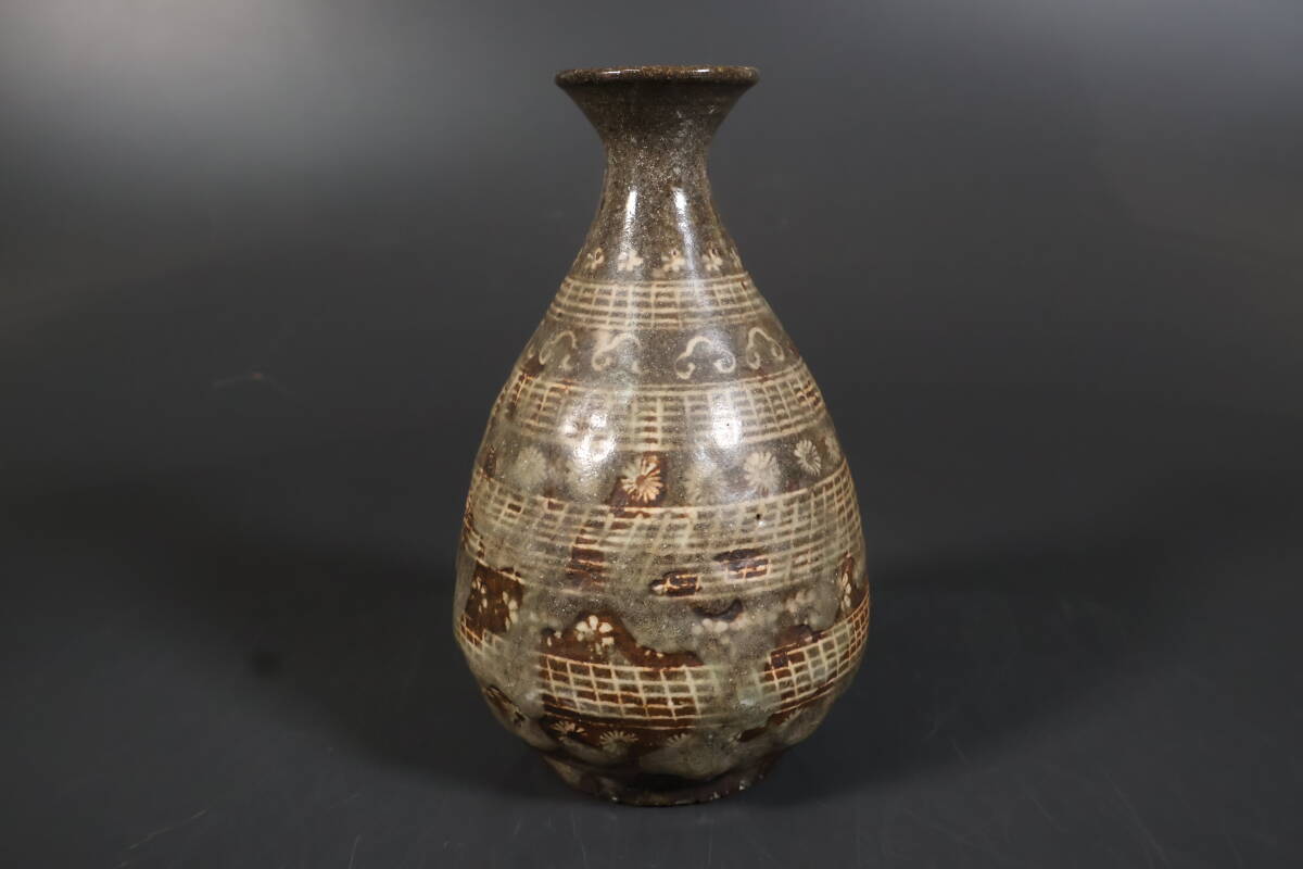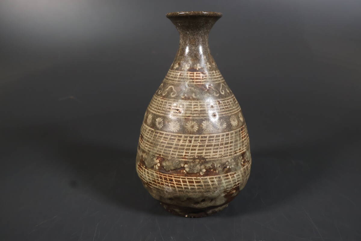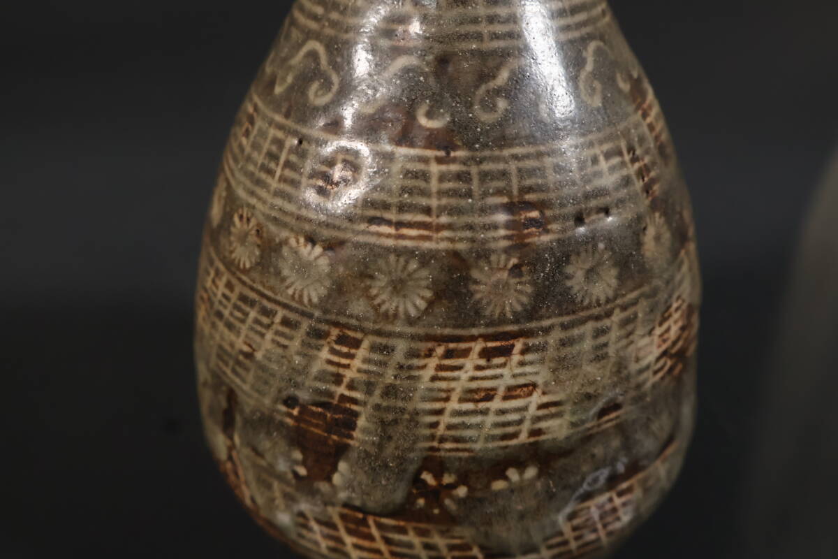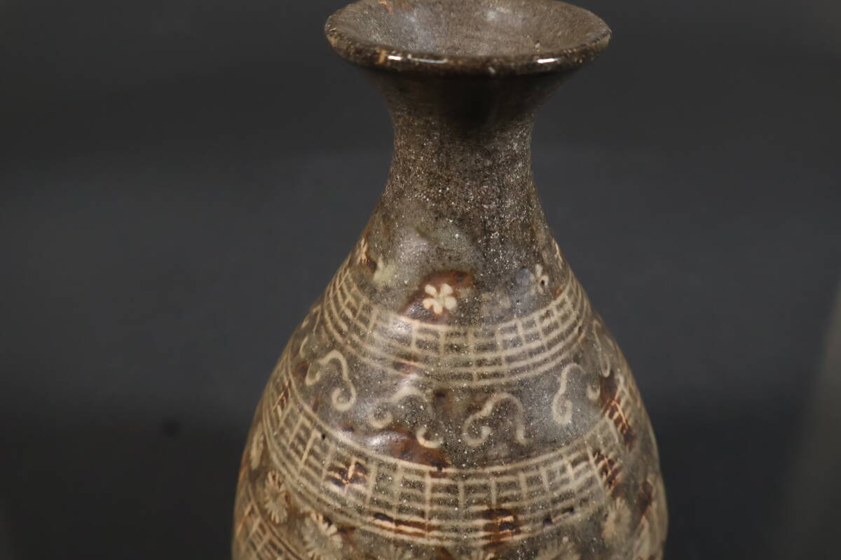【和】(A3406) 時代古作 古唐津 三島象嵌徳利 酒器 花生 酒徳利