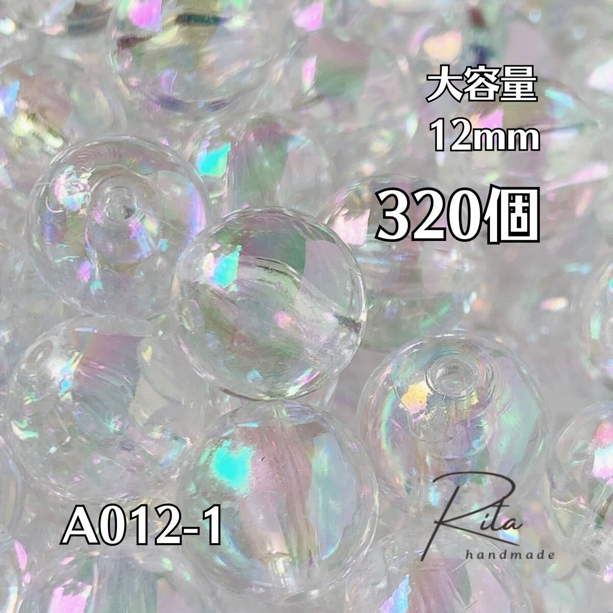 【大容量320個】クリア アクリルクリアビーズ オーロラ加工 12mm 両穴 ハンドメイド アクセサリーパーツ