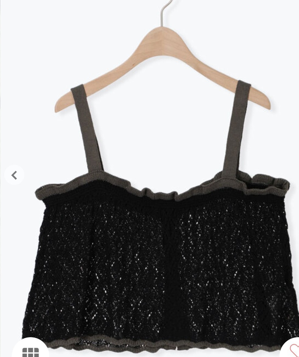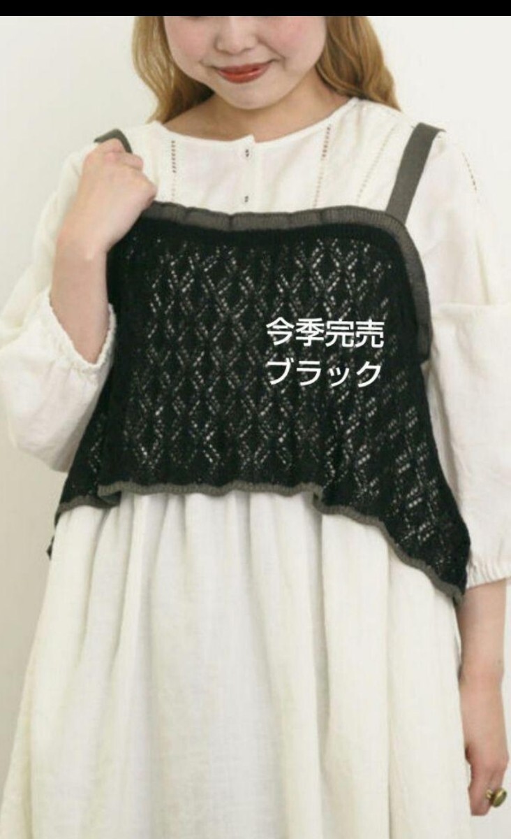 レースのような透かし編みと配色デザインがレトロで可愛いニットビスチェ。
