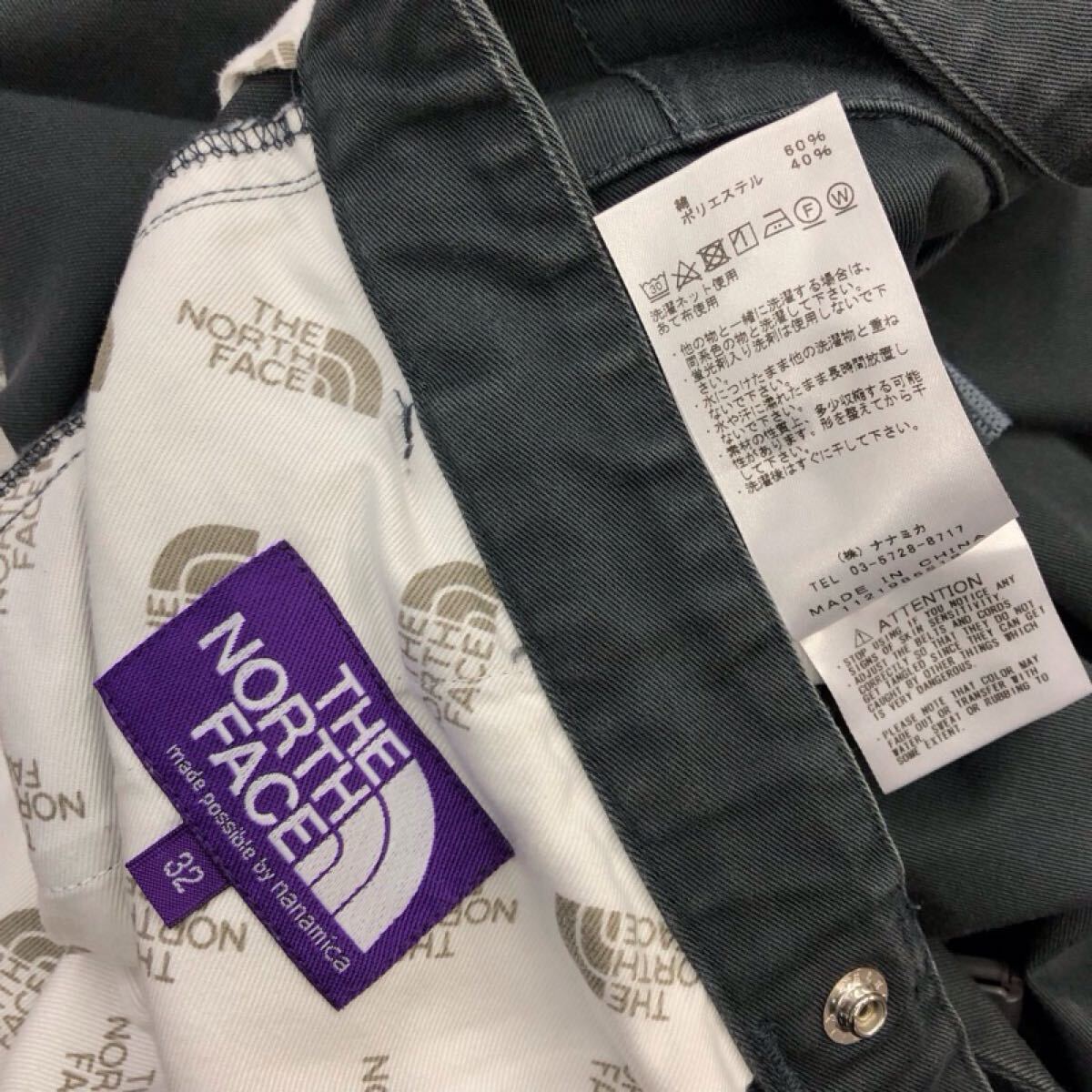 【GI212】THE NORTH FACE (株)ナナミカ W32 ワークパンツ チャコールグレー ベルト付き ブランド古着 ザノースフェイス 送料無料