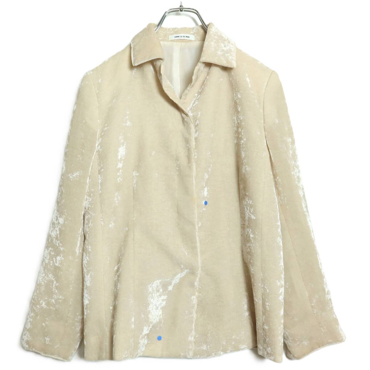 商品説明 | 【実寸約】肩幅39袖丈55バスト96着丈59 (cm) 【サイズ表記】 なし。実寸をご参照くださいませ。 【素材】ポリエステル100% 【状態】普通の使用感のあるお品物 薄シミ数か所あり 【デザイン】 ベージュ系 ベロア調のシャツ風長袖ジャケットです。 フロントはスナップボタンあり。 薄手/無地./裏地あり |