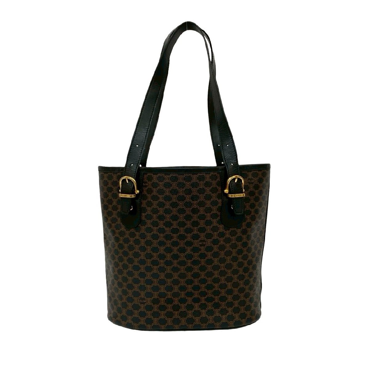 極 美品 CELINE セリーヌ ヴィンテージ マカダム ブラゾン トリオンフ 柄 レザー トートバッグ ハンドバッグ ブラック ブラウン 73730