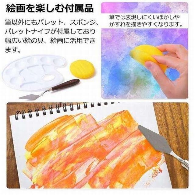 「アクリル絵の具 筆 12本セット」は丸型、平型短毛、平型、平型円頭、平型斜先や扇型のあらゆる筆先を揃えた大容量16点セットです。 筆の種類を豊富に用意することで、作品に合わせた筆を選ぶことができ、様々な絵の具で「絵画、お絵描き、陶芸、ガンプラ塗装等」の芸術制作を行うことができます。 また、筆のみではなく、パレット、パレットナイフ、スポンジ、スタンド可能収納ケースも付属しておりますので、絵の具をご用意していただければ、このセット1つで制作活動を楽しむことが出来ます。