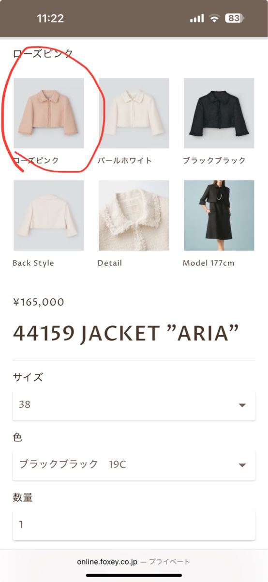 フォクシーブティックの現行コレクション「ARIA」ジャケットです。