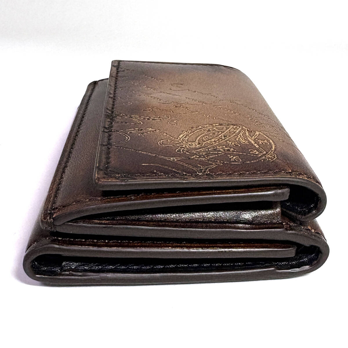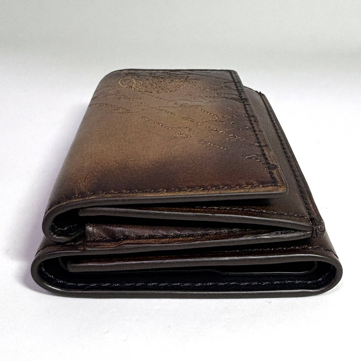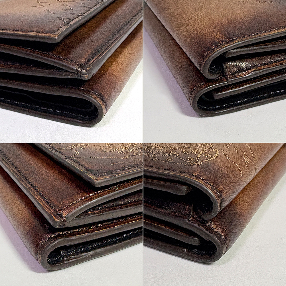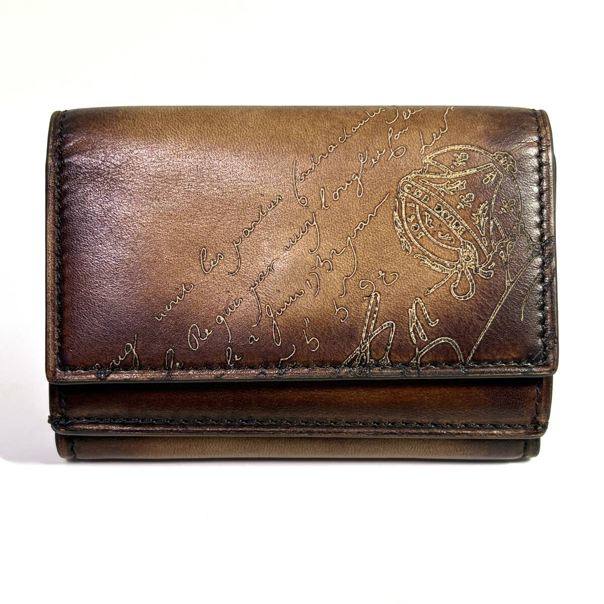 【Berluti】ベルルッティ アカジュー スクリットレザー コンパクト ウォレット 三つ折り財布 ブラウン