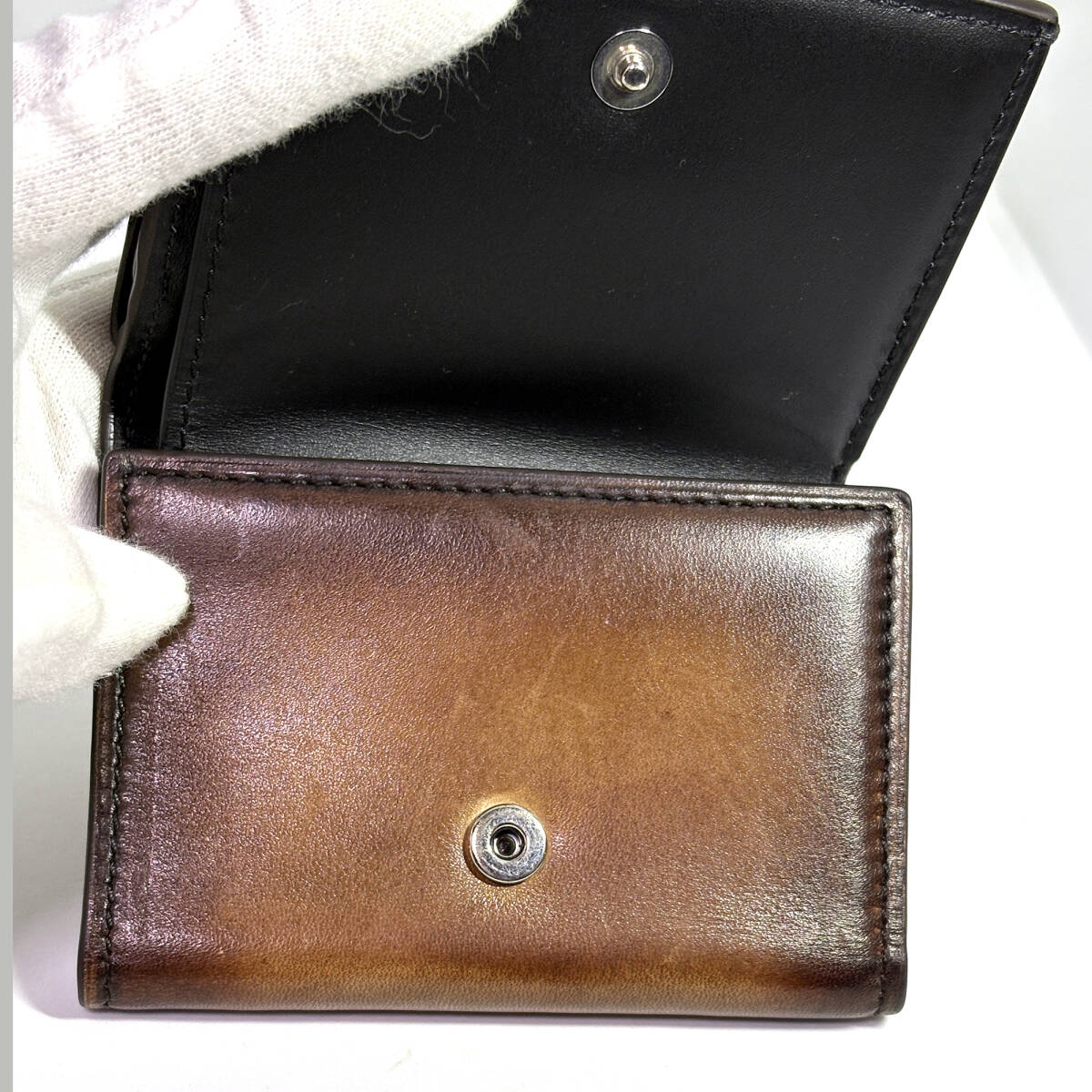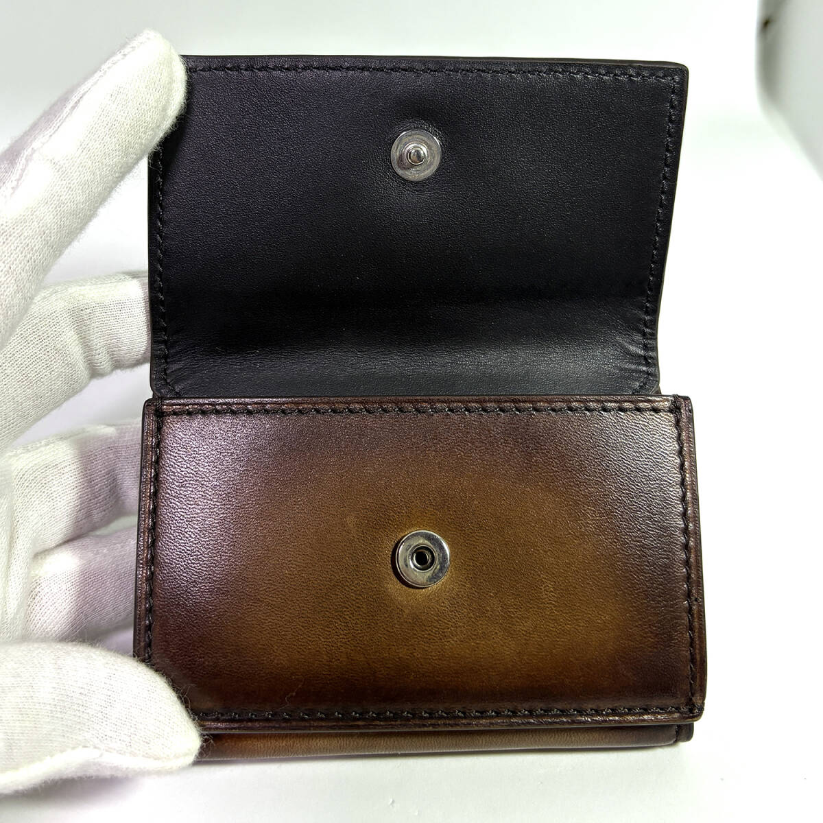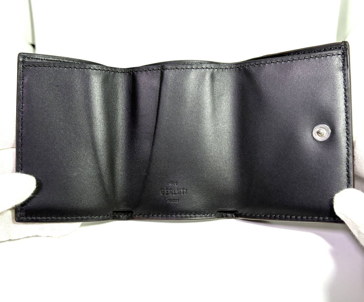 【Berluti】ベルルッティ アカジュー スクリットレザー コンパクト ウォレット 三つ折り財布 ブラウン