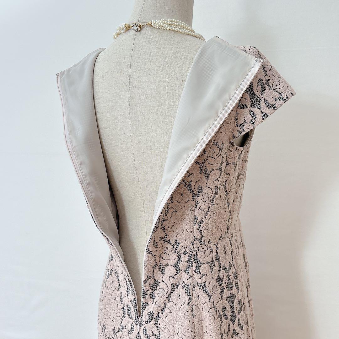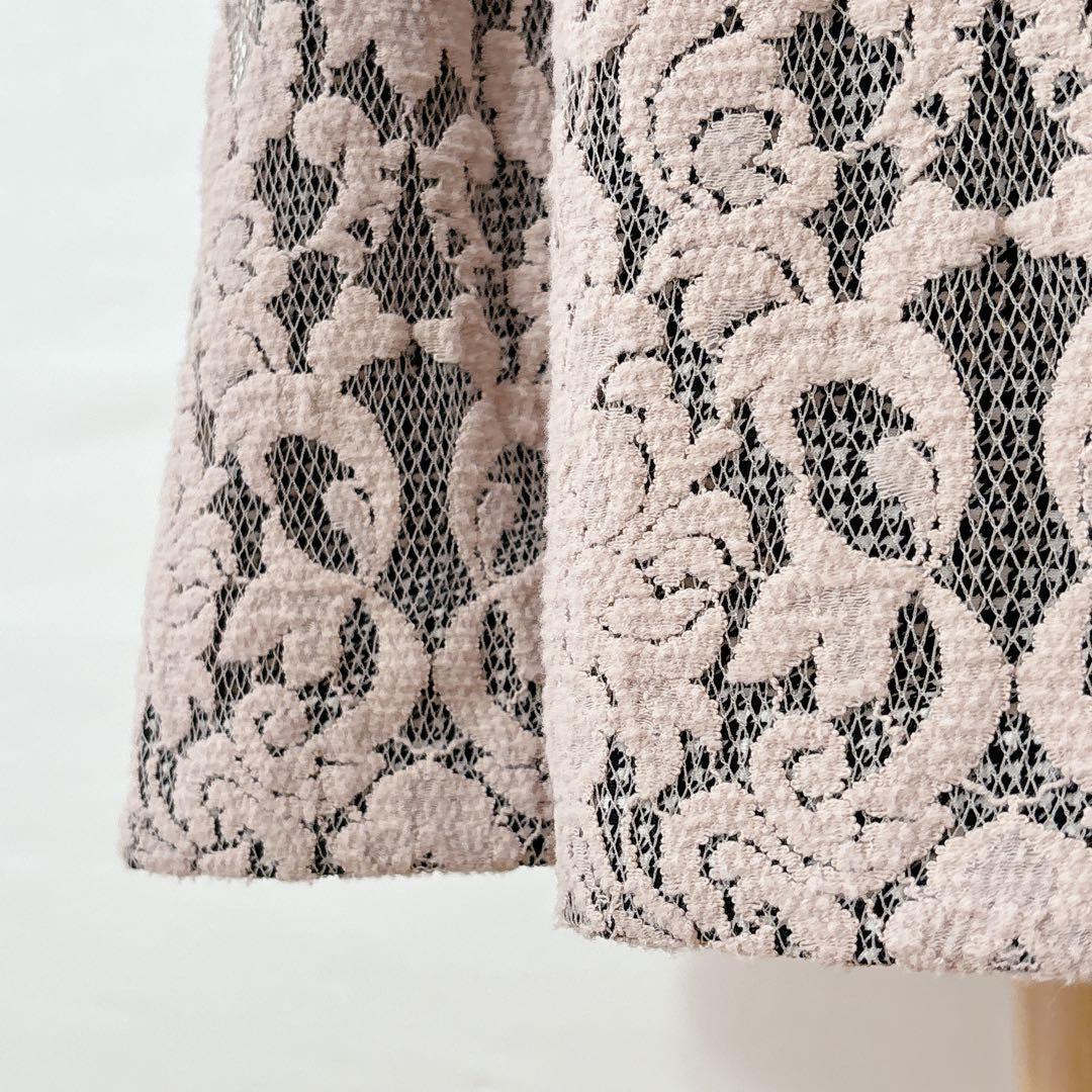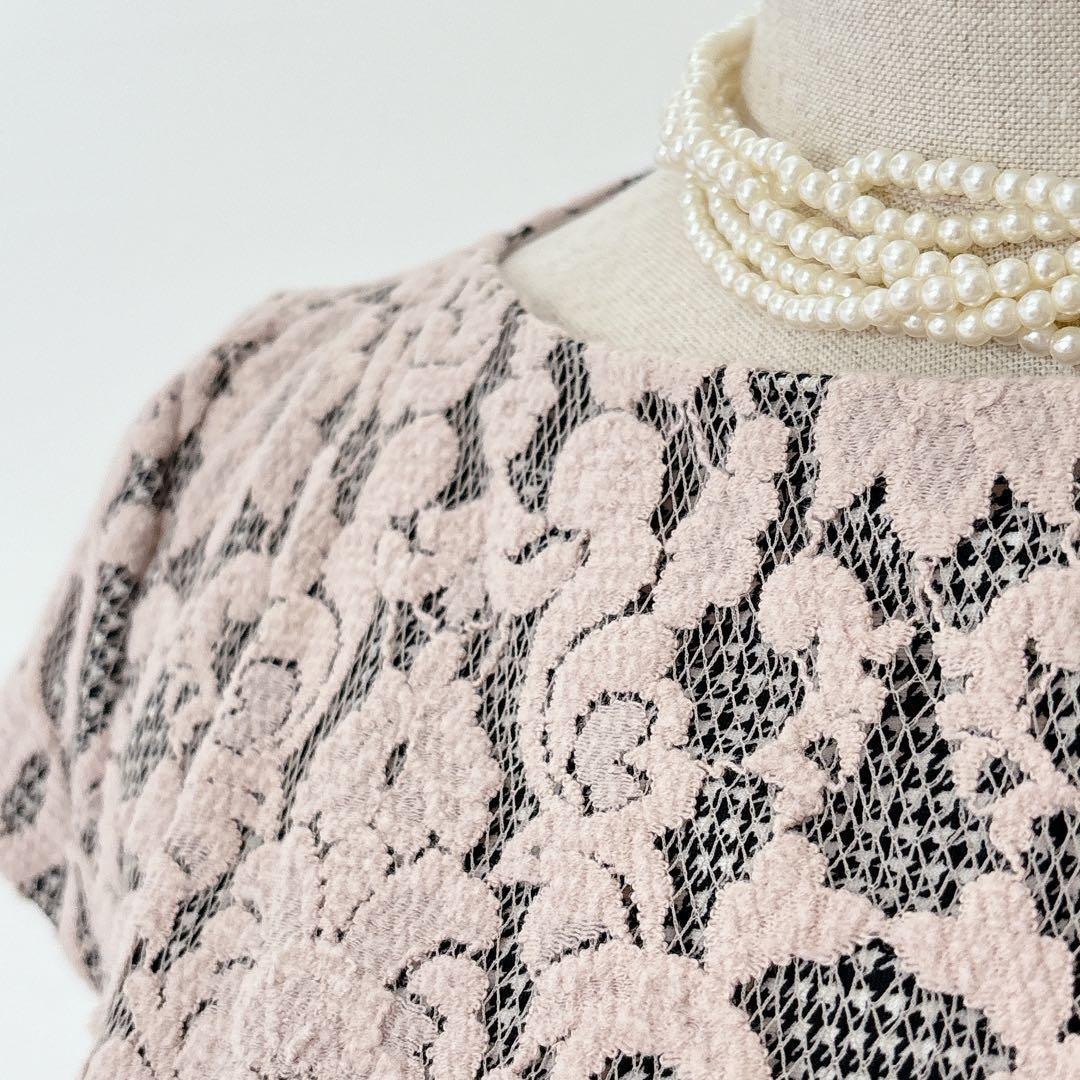 柔らかなレースと、細かい千鳥プリントのストレッチ素材をボンディング加工したワンピース。