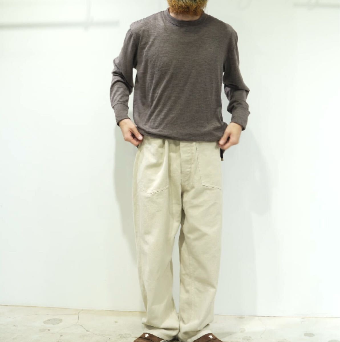 別注要素は色がグレージュのようなスラブ生地のデニムになります。